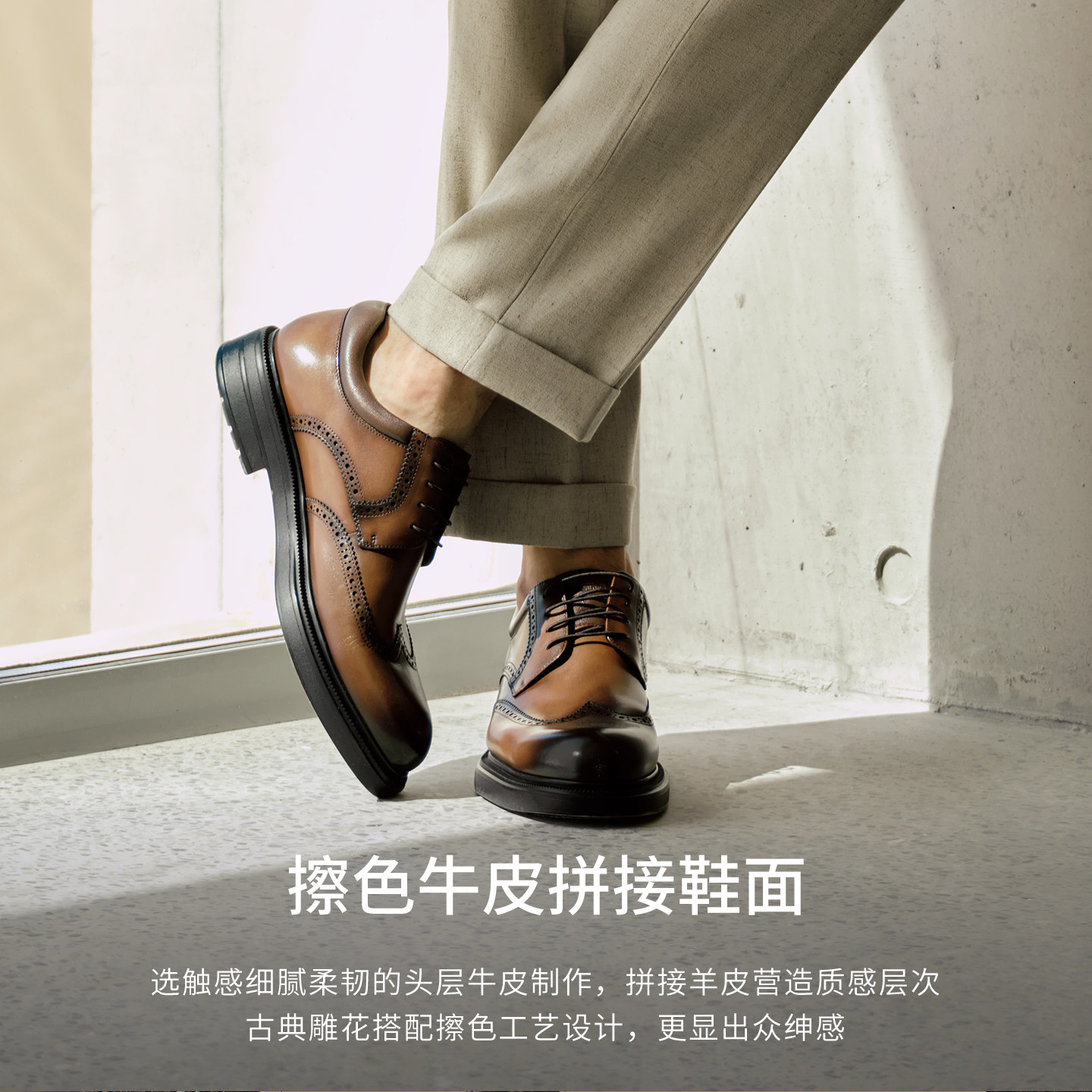 全真皮制作 布洛克雕刻设计正装皮鞋