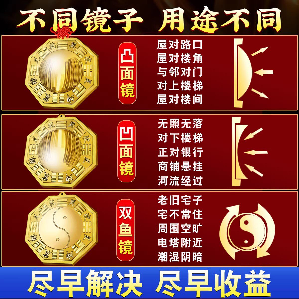 八卦镜凸镜纯铜家用九宫太极门口窗户凹镜挂件客厅店铺摆件子凹面