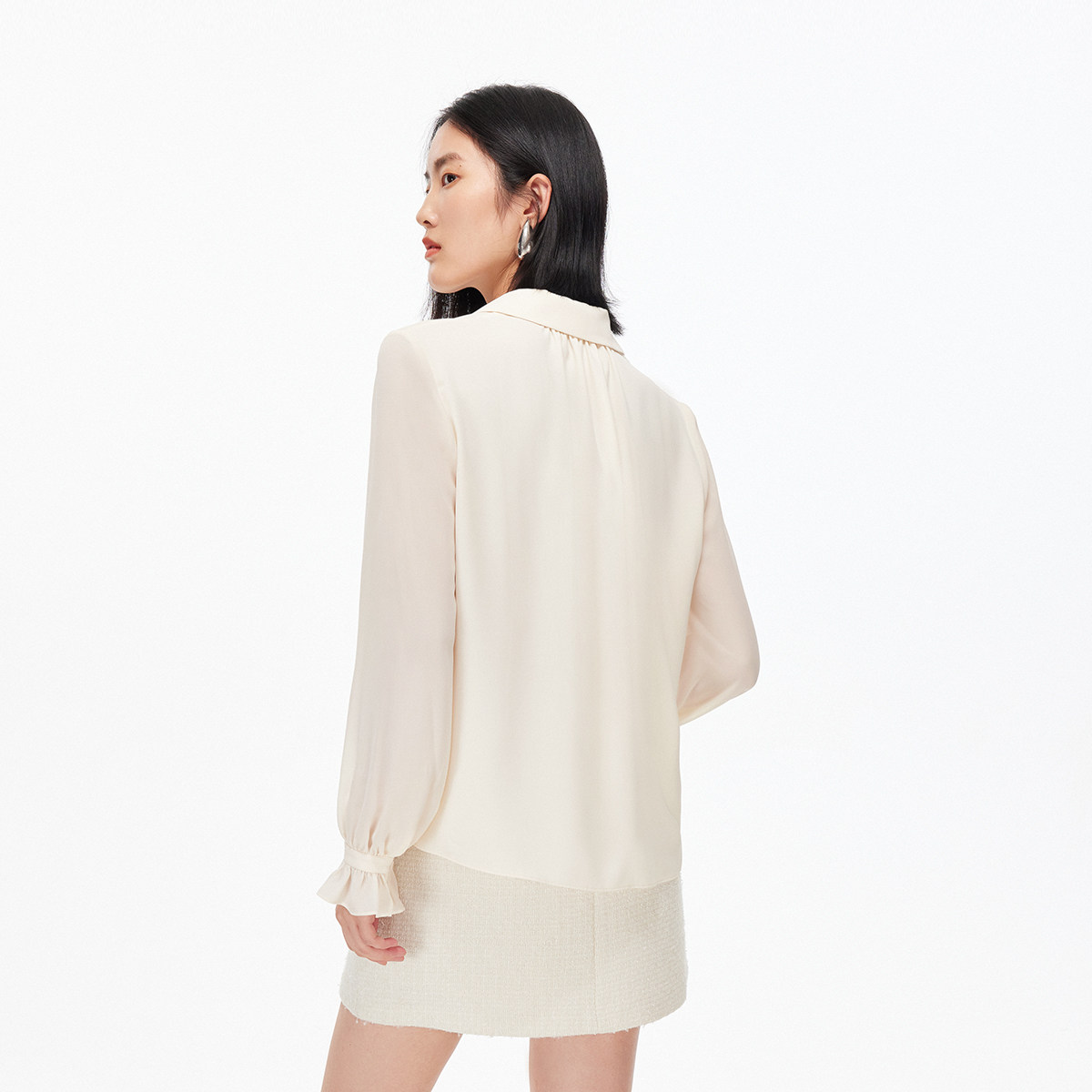 COCOBELLA名媛风手工压褶木耳边雪纺衬衫气质通勤飘带衬衣SR7062