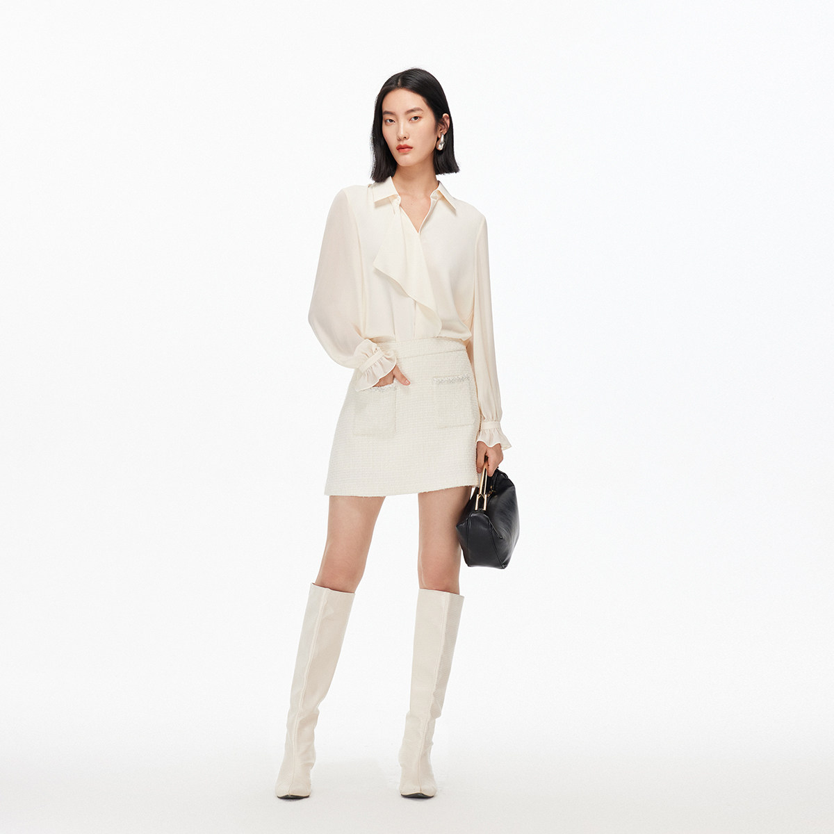 Vero Moda衬衫2025秋季新款七分灯笼袖可拆卸蝴蝶雪纺衫325305021