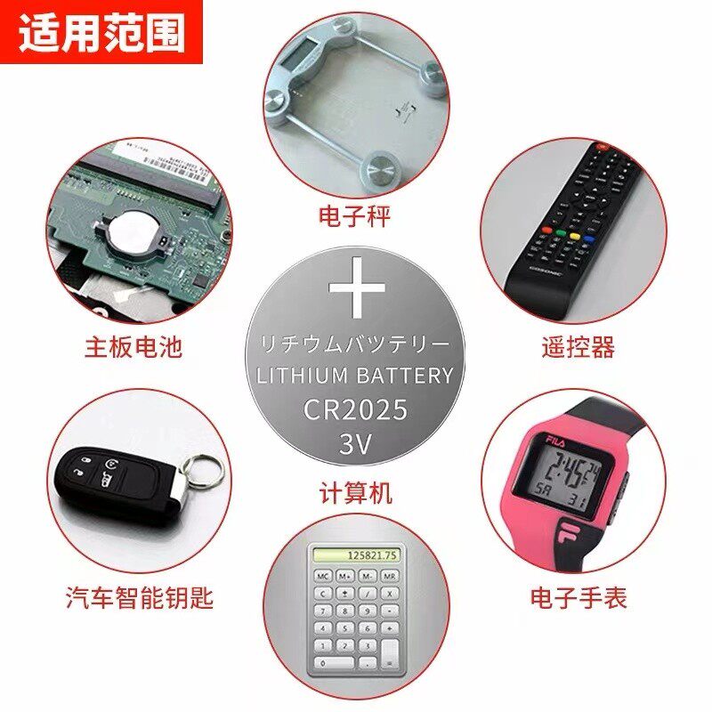 CR2025纽扣电池汽车钥匙遥控器血糖仪手表电子秤计算机3V电池电子