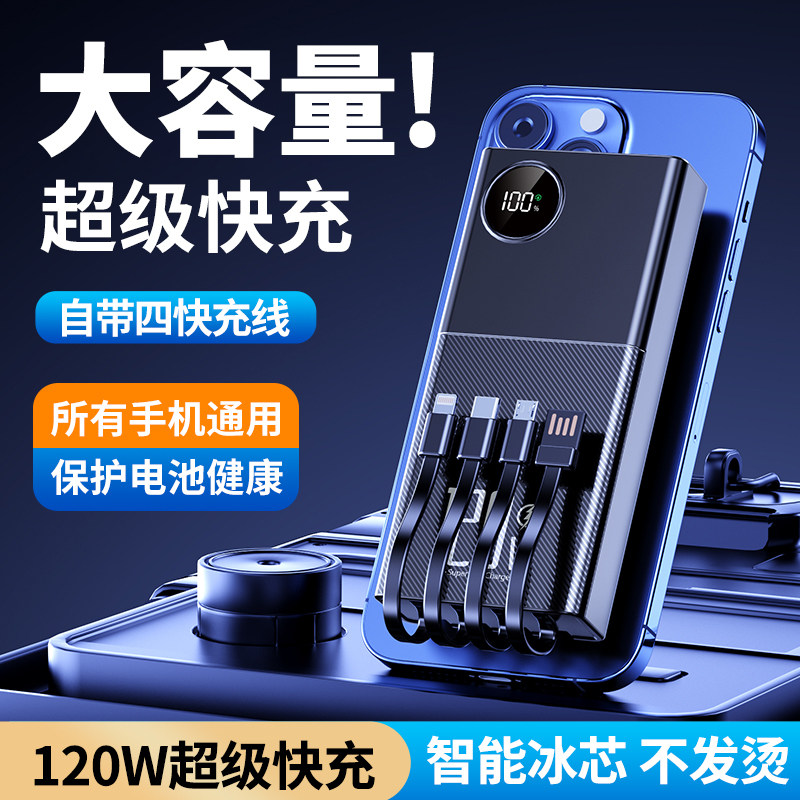 充电宝【新国标3C认证】超级快充正品新款大容量超级闪充50000毫安自带线20000毫安适用华为苹果5万移动电源