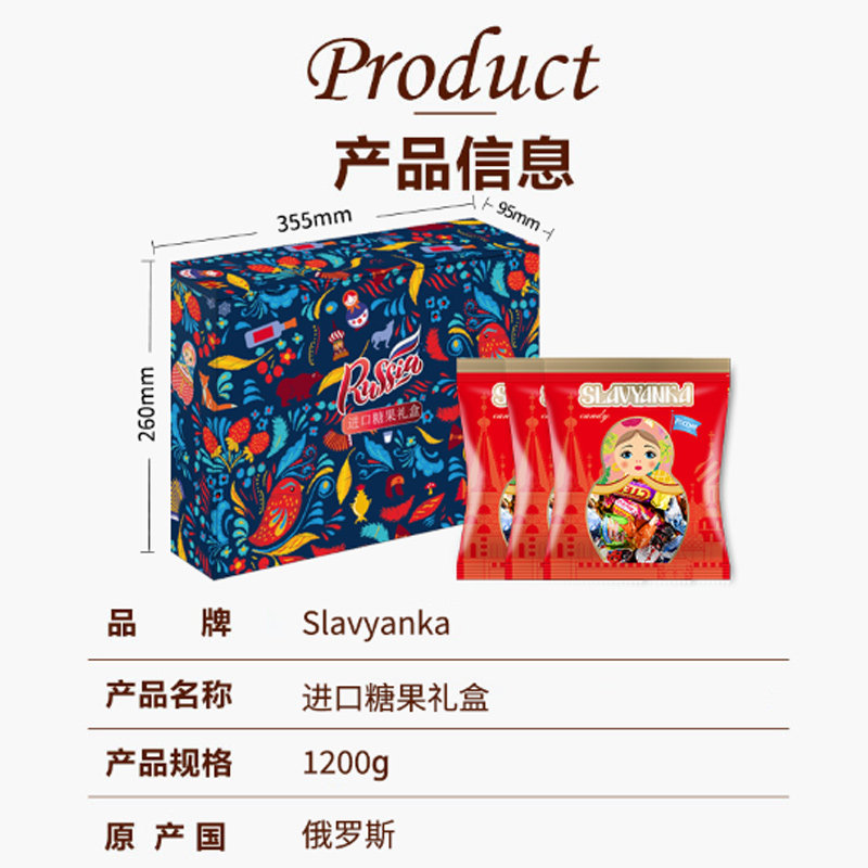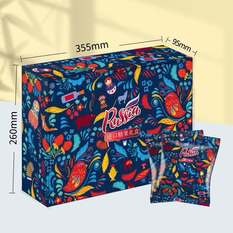 俄罗斯进口巧克力糖果盒年货喜糖混合高端零食大礼包软糖花生夹心