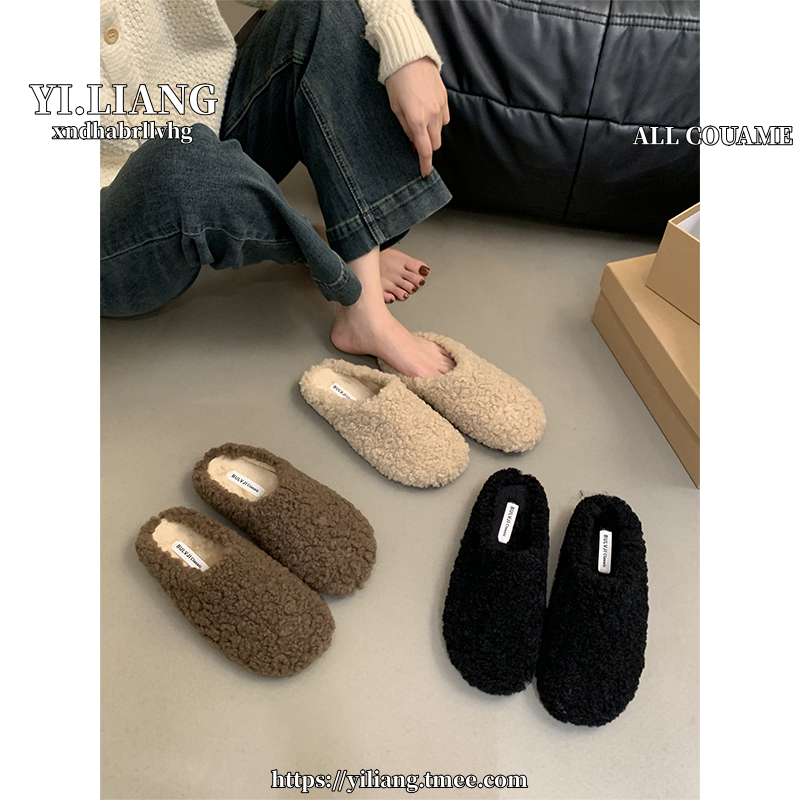羊羔毛毛拖鞋女外穿2024新款冬季韩版平底懒人穆勒鞋加绒包头半拖