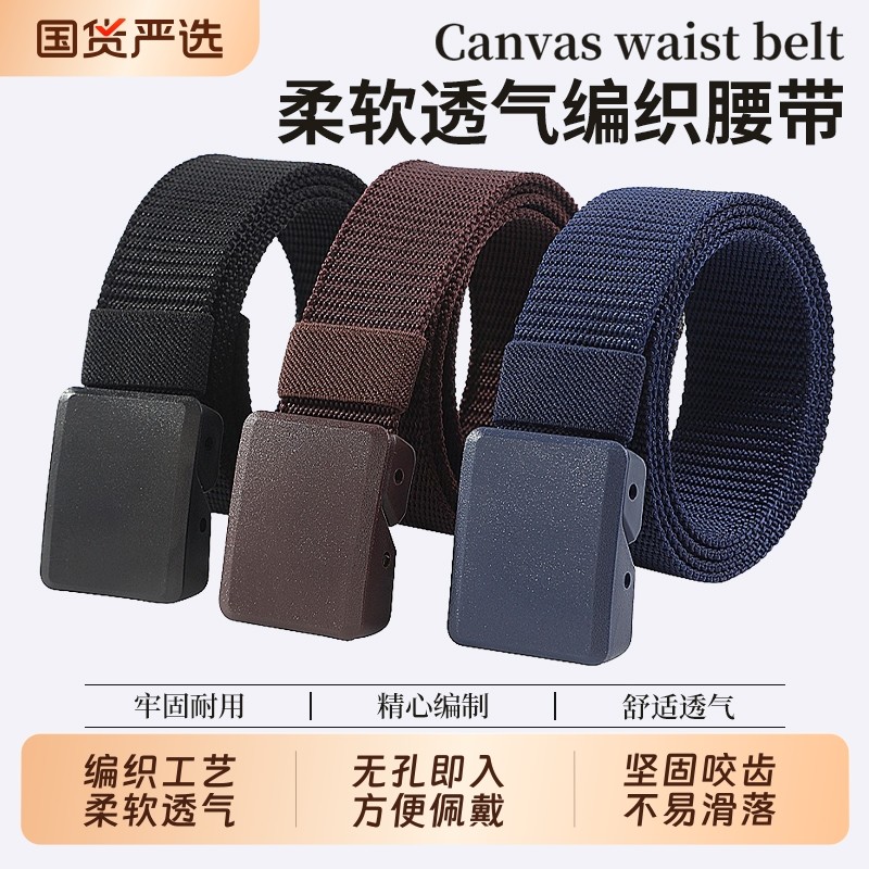 新款无痕男士战术腰带休闲帆布自动扣丙纶无牙学生军训轻便腰链