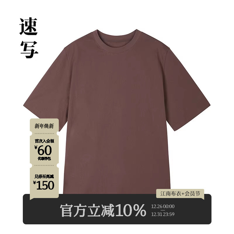 速写男装春夏新款男士短袖T恤棉质圆领宽松廓形上衣休闲通勤简约