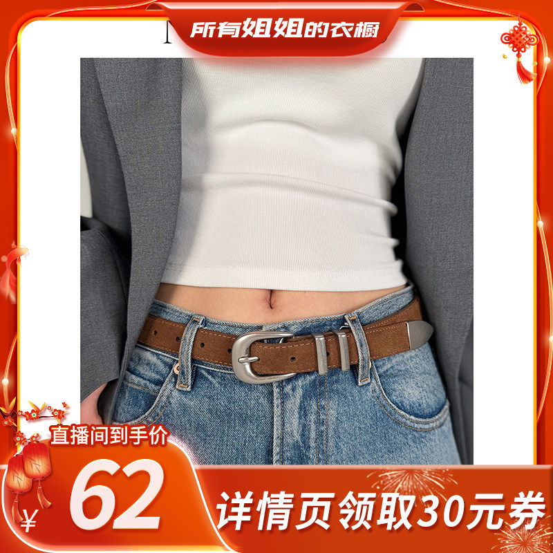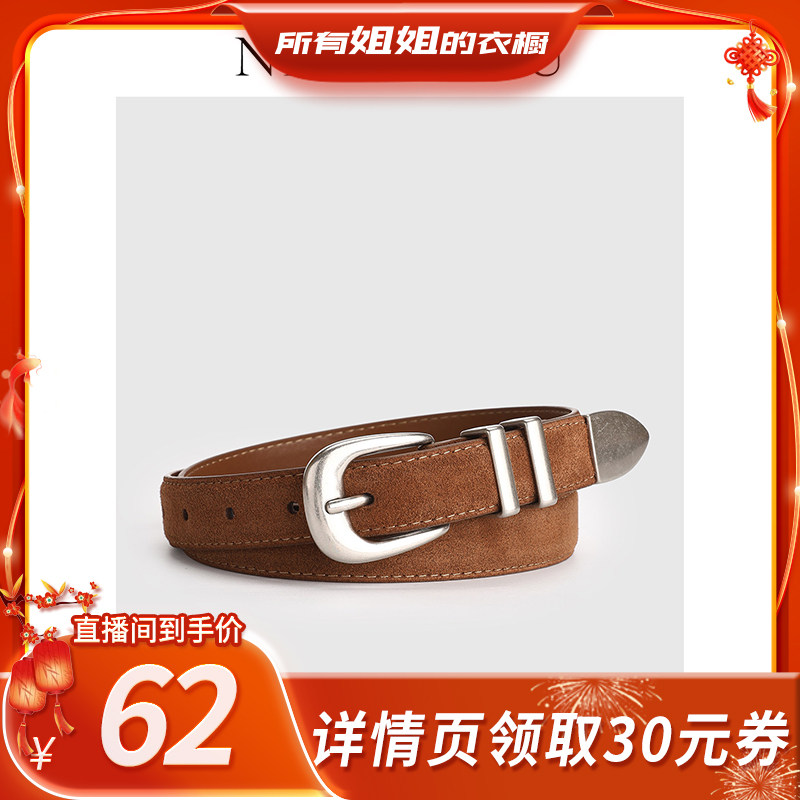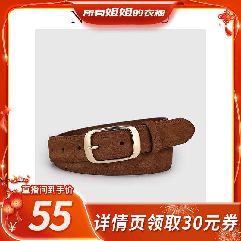 牛大叔春季新款腰带女简约百搭绒面牛皮设计感显瘦皮带麂皮显瘦