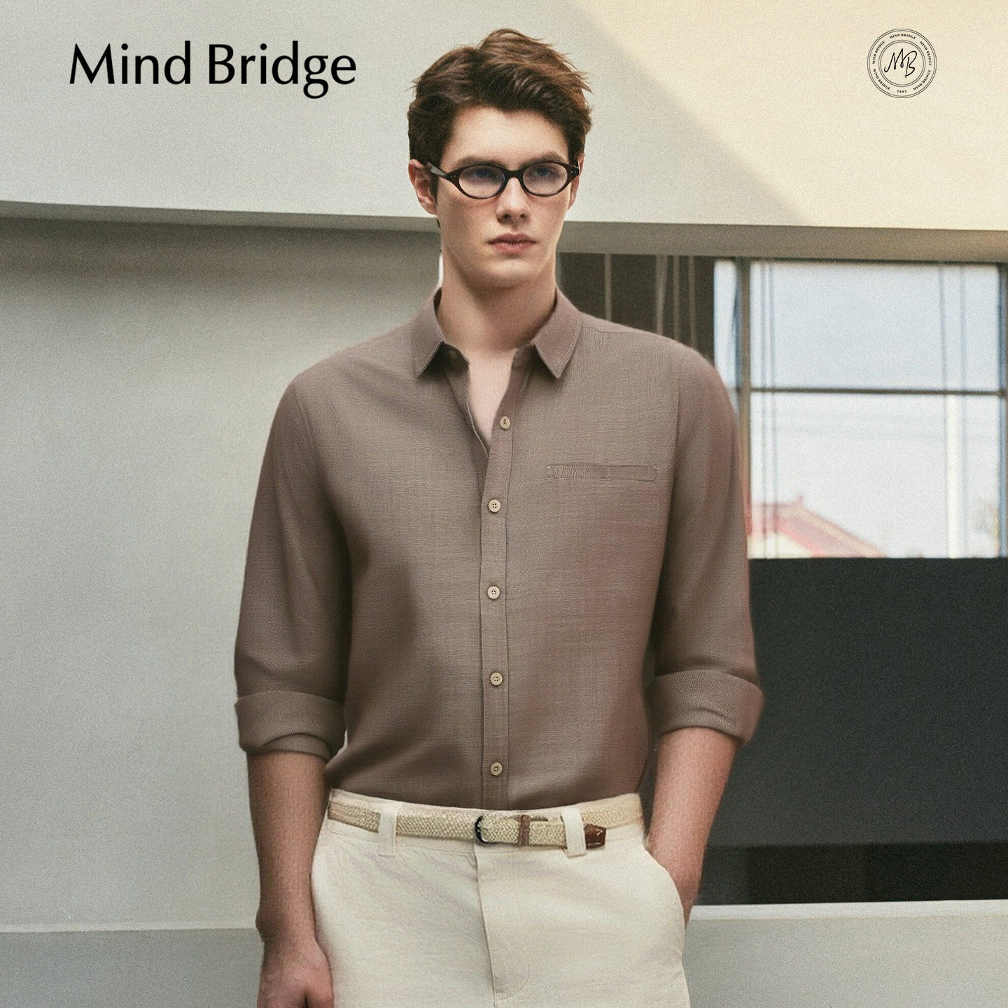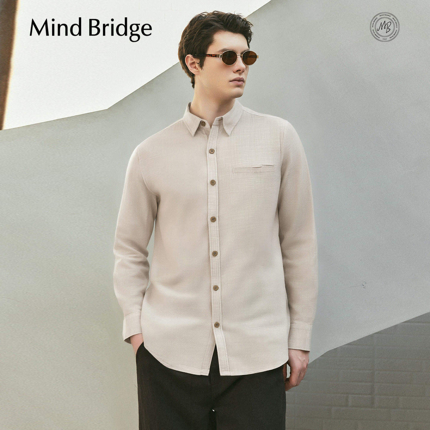 MindBridge【亚麻】男士日系复古休闲衬衫2026年春季宽松长袖衬衣