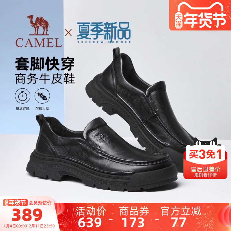 骆驼男鞋2025秋季新款舒软牛皮一脚蹬爸爸鞋增高经典商务休闲皮鞋