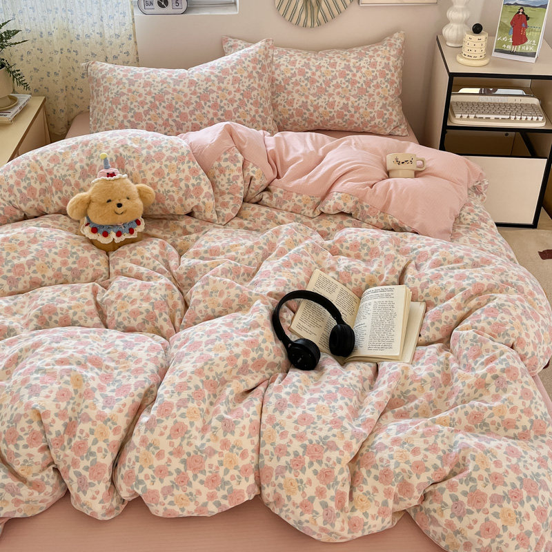A类双层纱床上四件套纯棉全棉新款田园床单件被套被罩宿舍三件套4