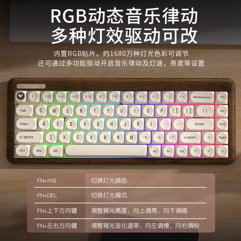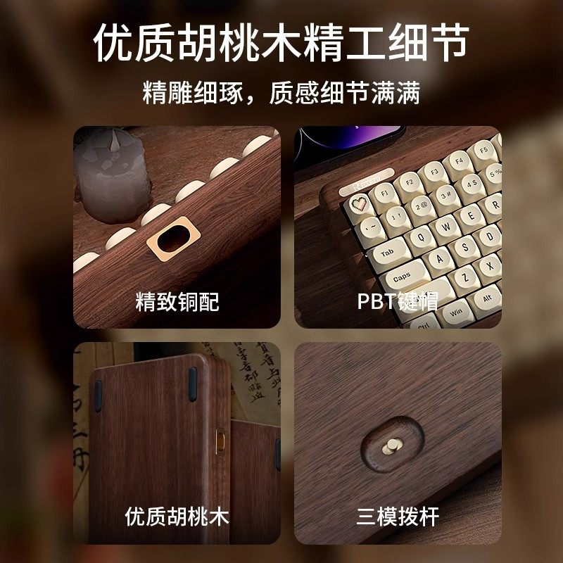 雷咖泽R84木坨坨豆腐键帽胡桃木客制化机械键盘无线三模键盘套件
