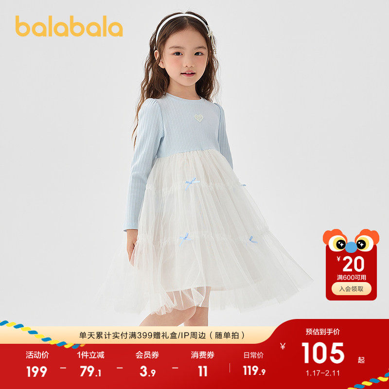 巴拉巴拉balaOne童装女公主裙2025秋冬新款儿童连衣裙针织网纱裙