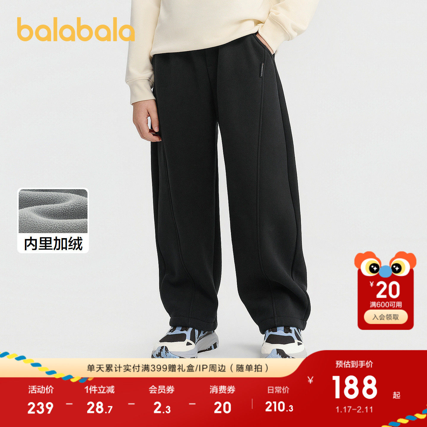【商场同款】巴拉巴拉童装儿童裤子男童长裤2025冬新款加绒弯刀裤