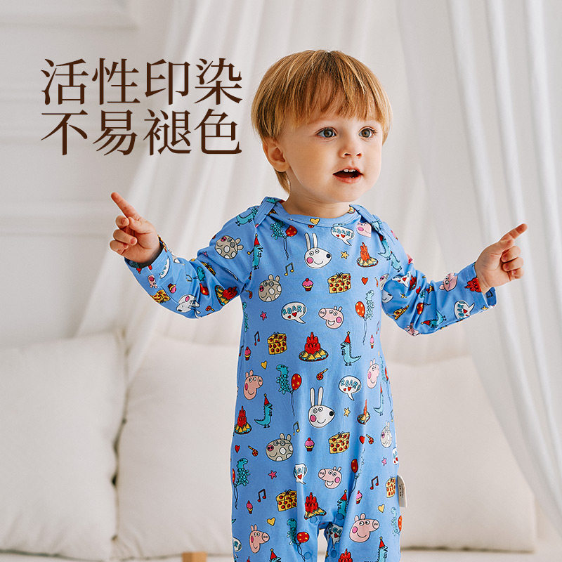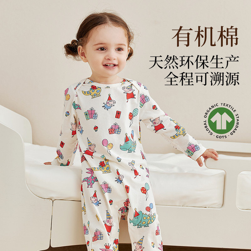 英氏婴儿小猪佩奇联名有机弹力棉贴身睡袋长袖宝宝连体儿童睡衣