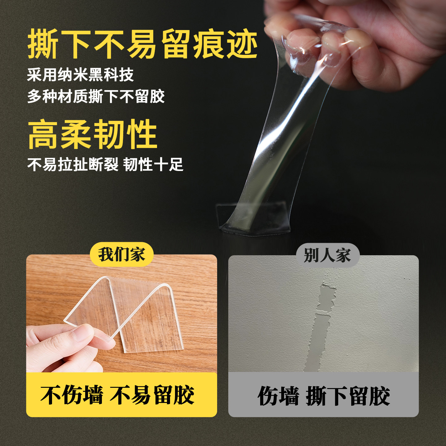 透明纳米双面胶 可撕不残胶 不留痕 不伤墙
