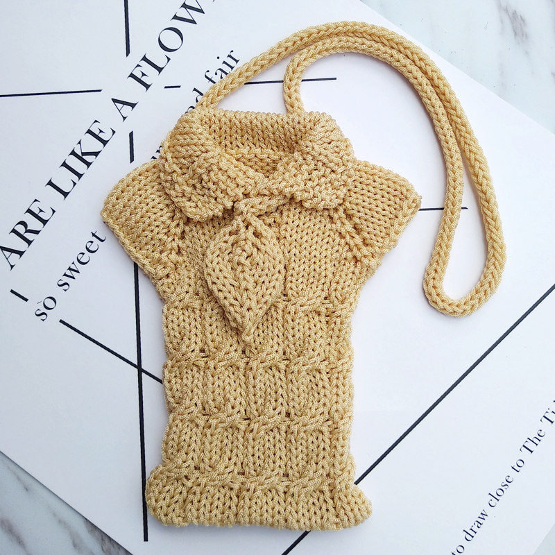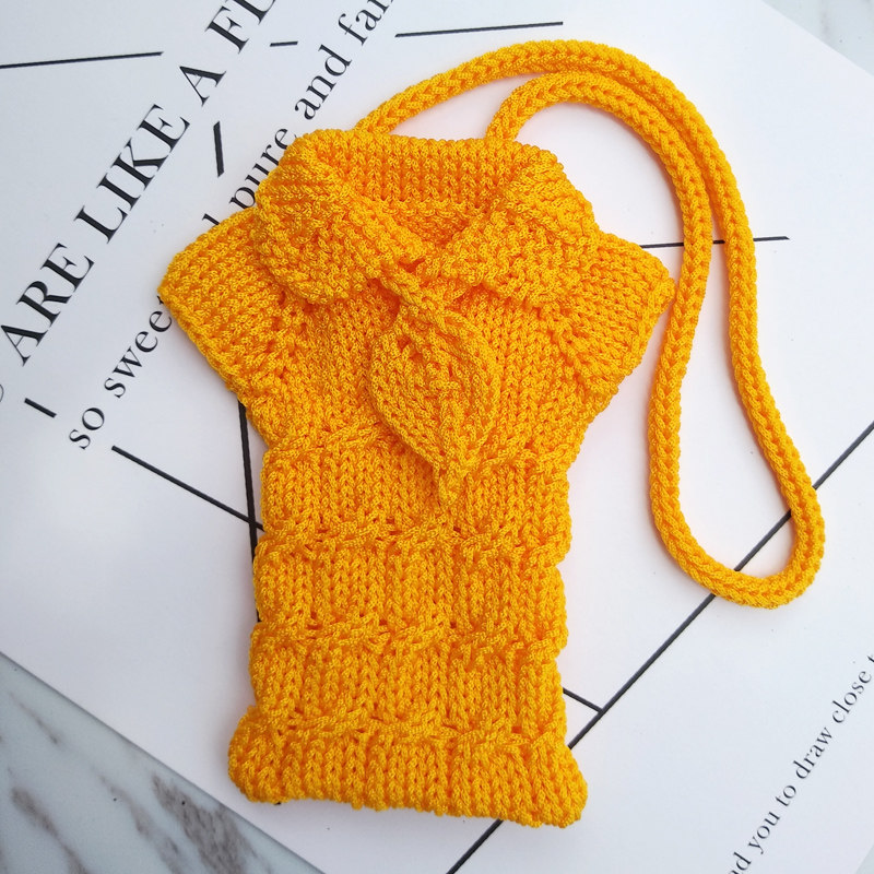 短绳手机袋手腕包编织毛线保护套零钱包小包老年机学生交通卡套壳