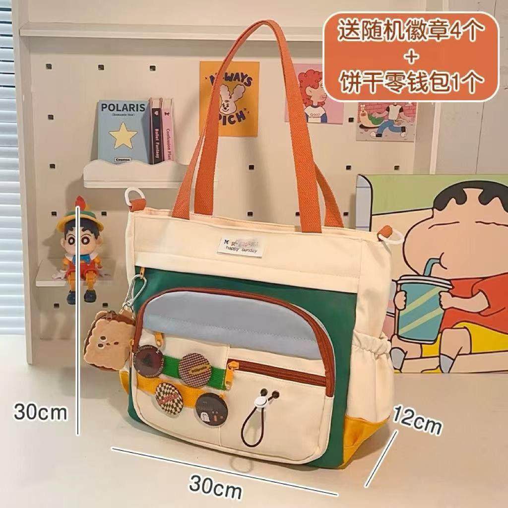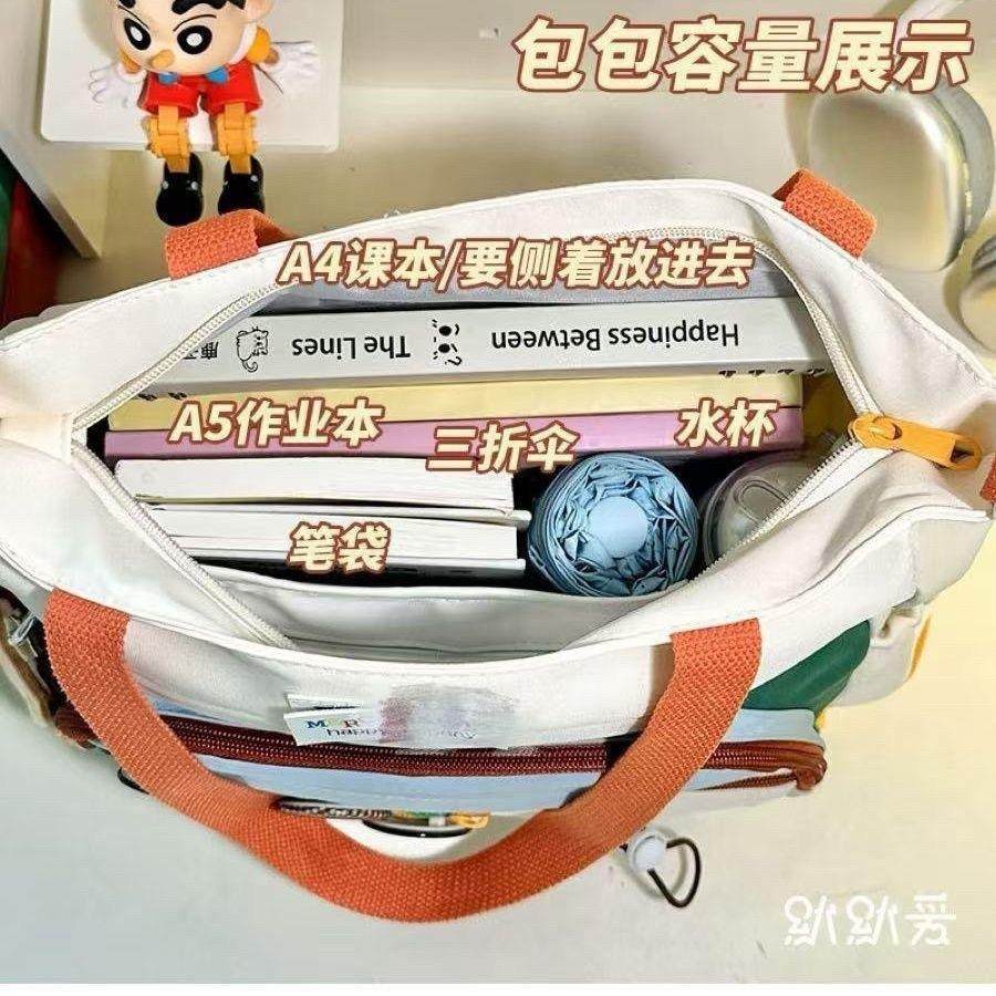 帆布包单肩斜挎包大容量学生上课上班通勤包补习袋手提妈咪托特包