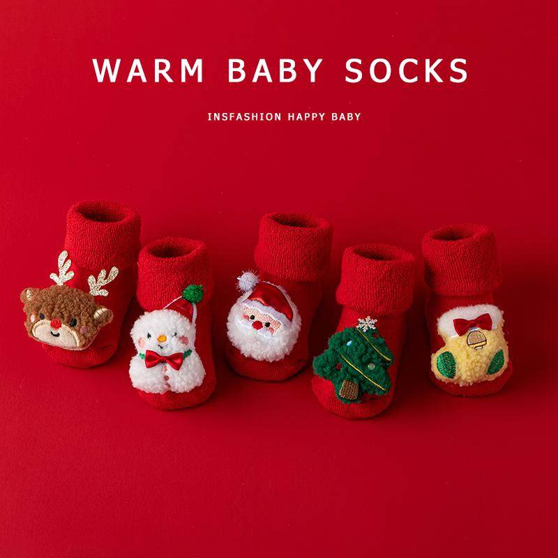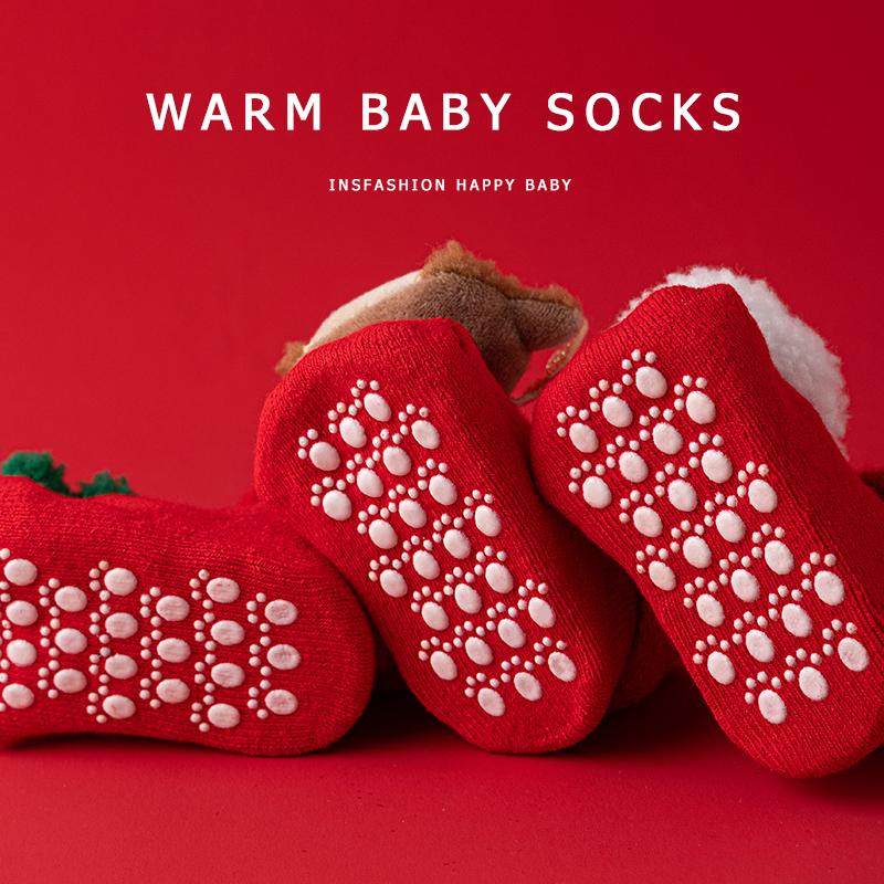 婴儿圣诞袜加厚保暖新生幼儿秋冬季地板袜可爱卡通公仔宝宝儿童袜