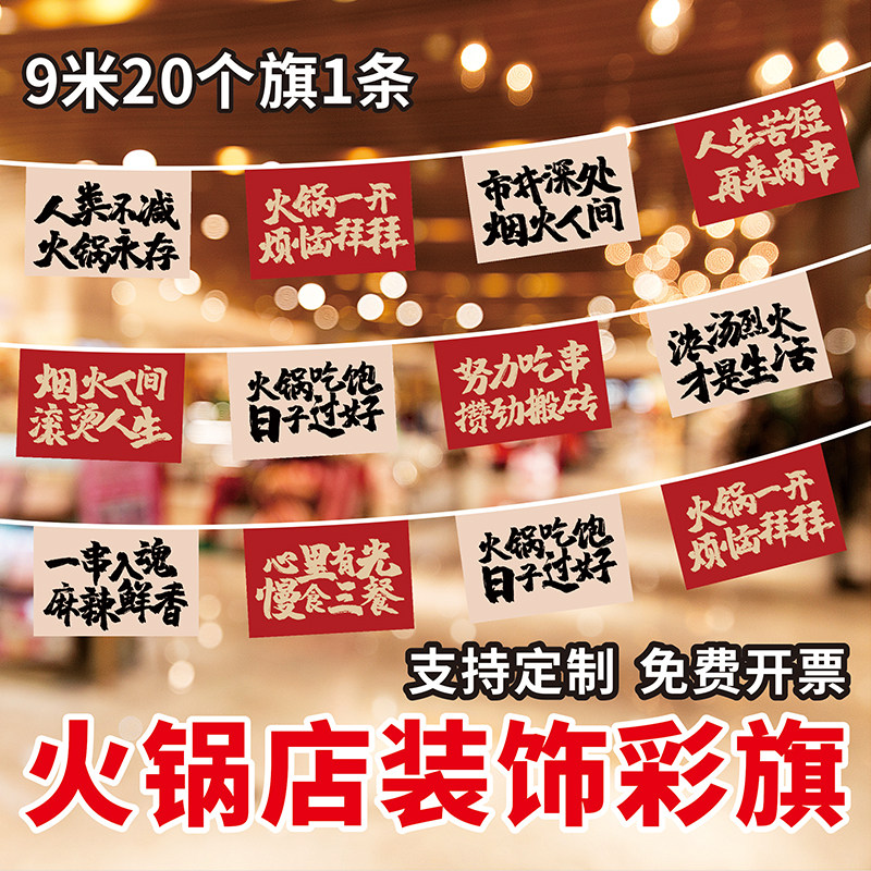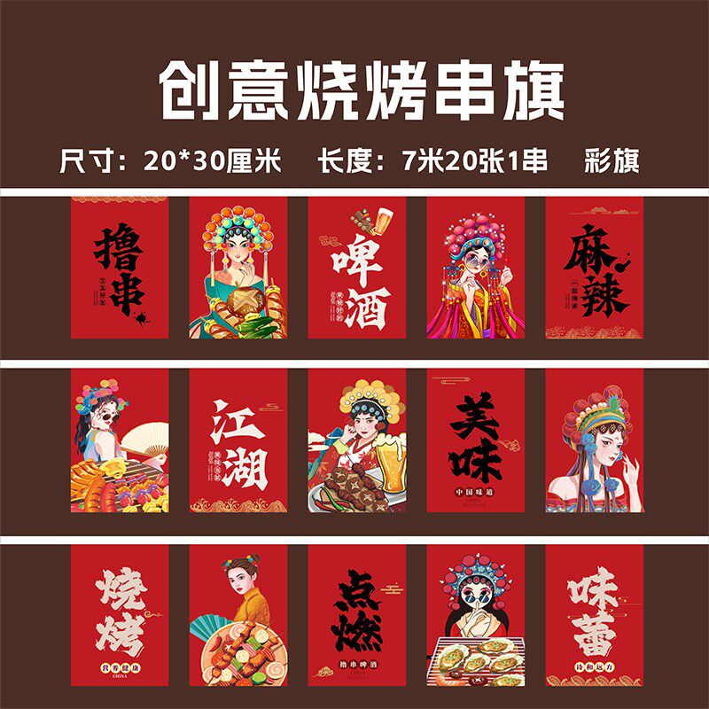 火锅串旗烧烤香锅装饰材质夜市文化节街道旗帜布置氛围衬托用品大