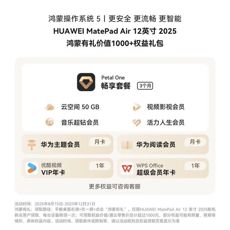 HUAWEI MatePad Air 12 英寸 2025 华为平板电脑 鸿蒙AI 2.8K高刷超清全面屏学生新款