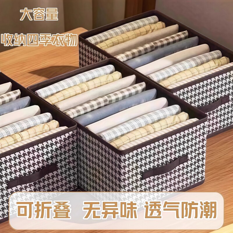 衣服收纳箱千鸟格家用衣柜分层整理收纳神器放衣物布艺折叠收纳筐