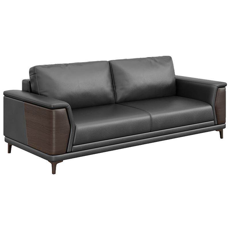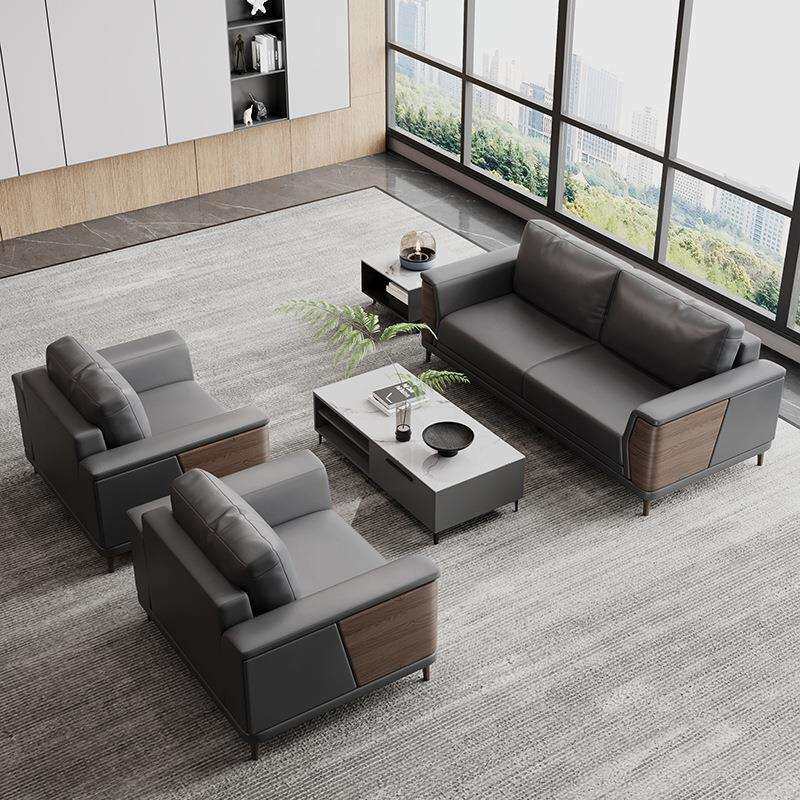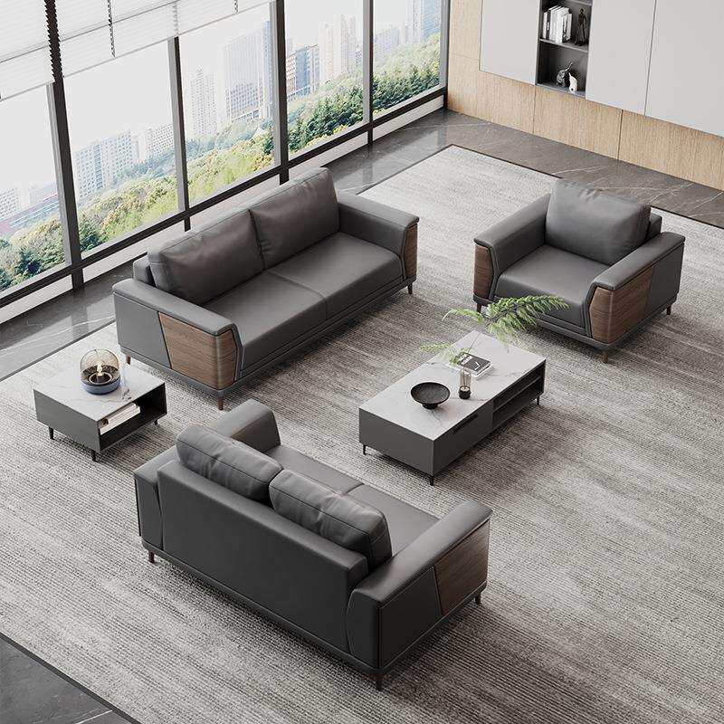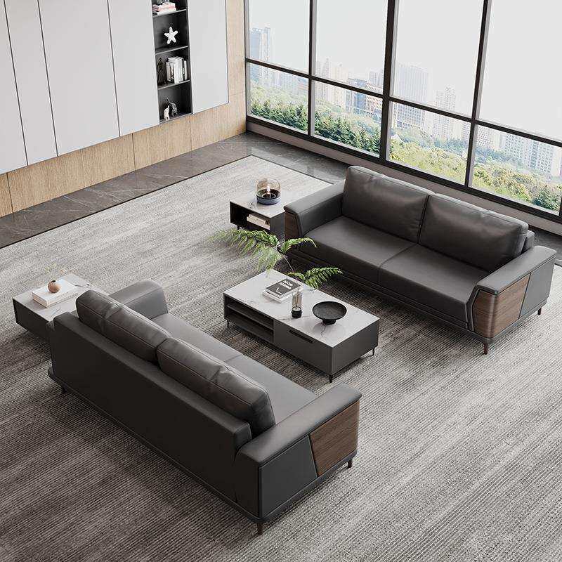 办公沙发高端大气中式三人位商务接待室简约现代皮艺沙发茶几套装