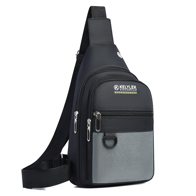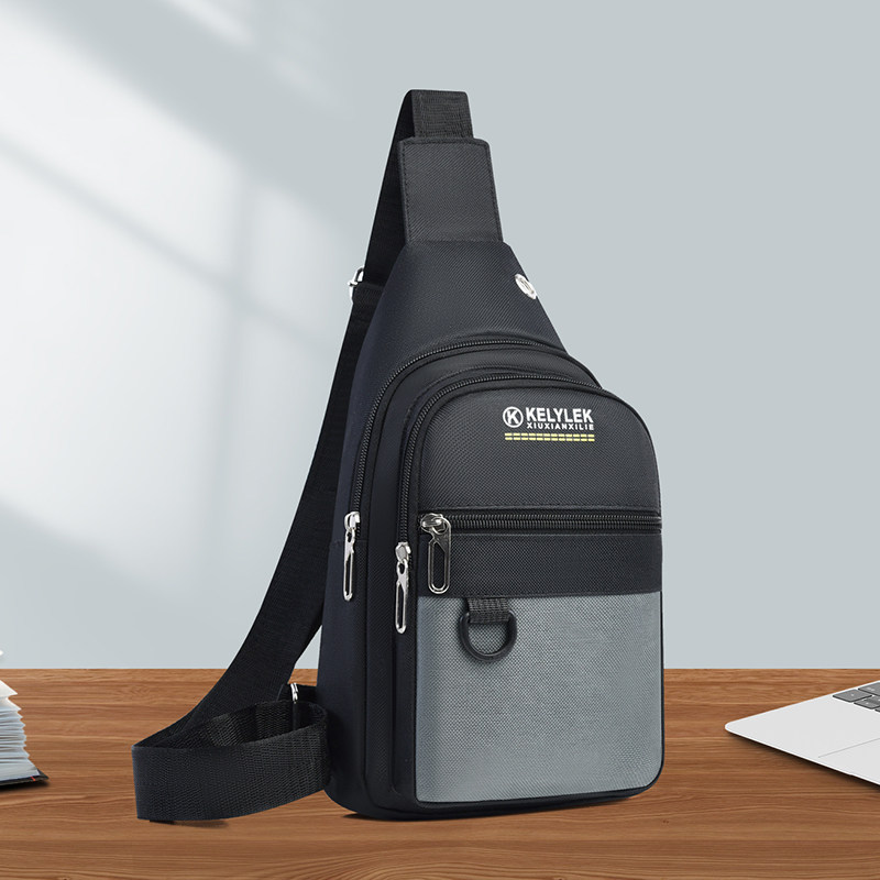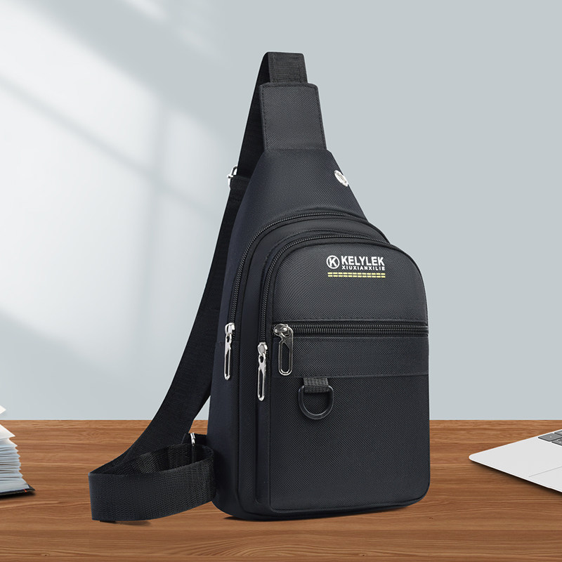 胸包男款男士运动休闲胸前包牛津布黑色斜挎包男帆布单肩小背包