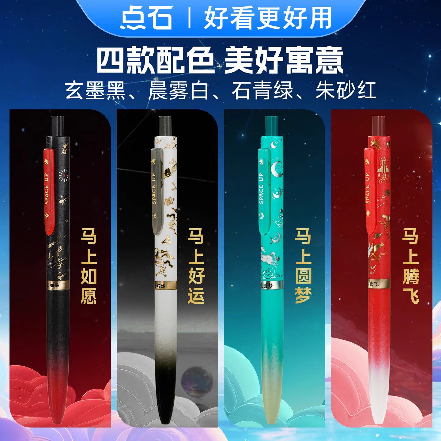 【马年生肖限定】点石天马行空马年时空舱深海舱双珠速干按动静音中性笔礼盒黑科技学生考试刷题黑笔新年礼品