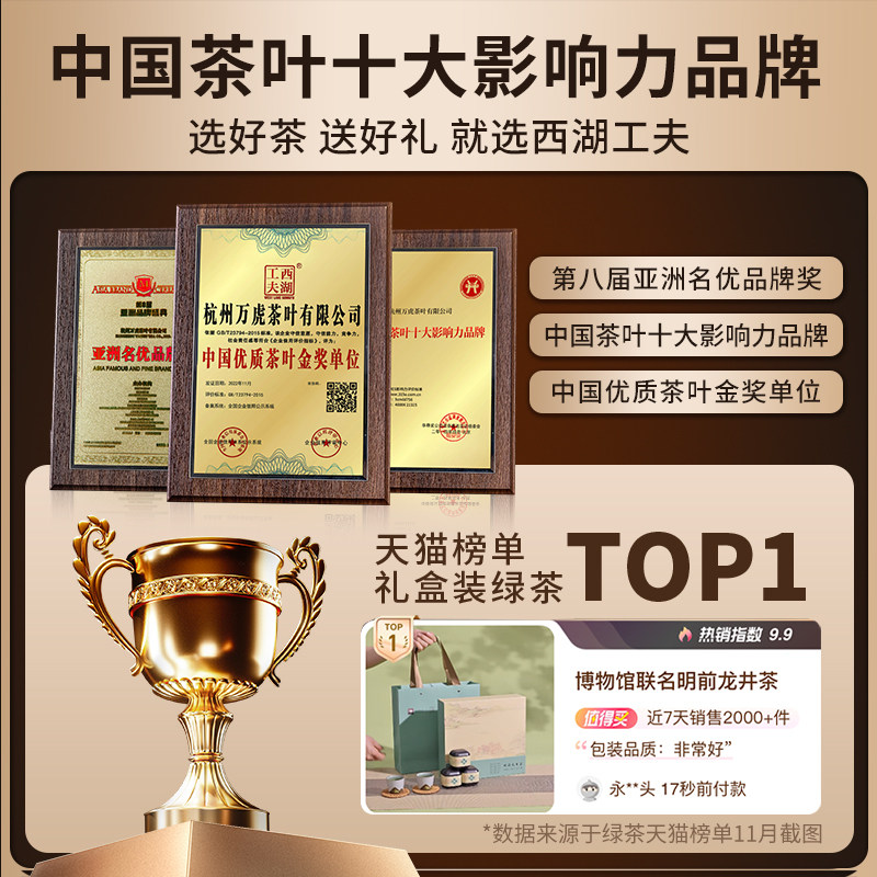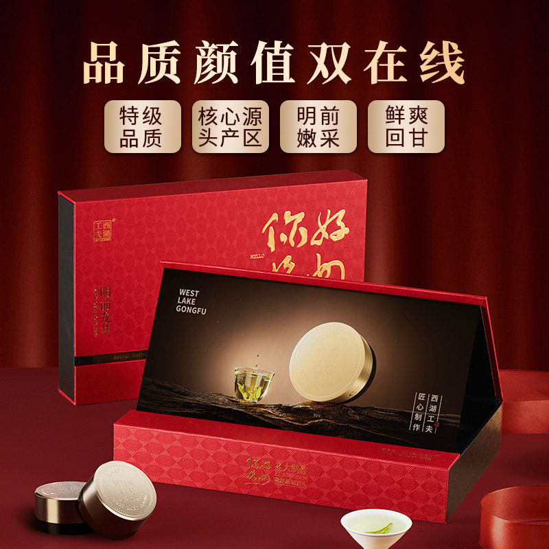 西湖工夫杭州特产明前龙井绿茶叶礼盒装送长辈生日礼物过年走亲戚