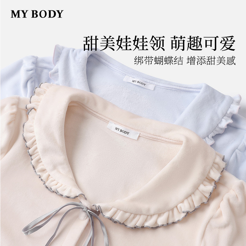 商场同款MYBODY冬季新款睡衣女款甜美娃娃领绑带蝴蝶结家居服套装