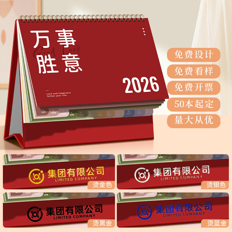 公司台历定制2026年新款创意商务个性设计办公桌面摆件记事本烫金广告日历马年25年月历年历企业专版台历定做