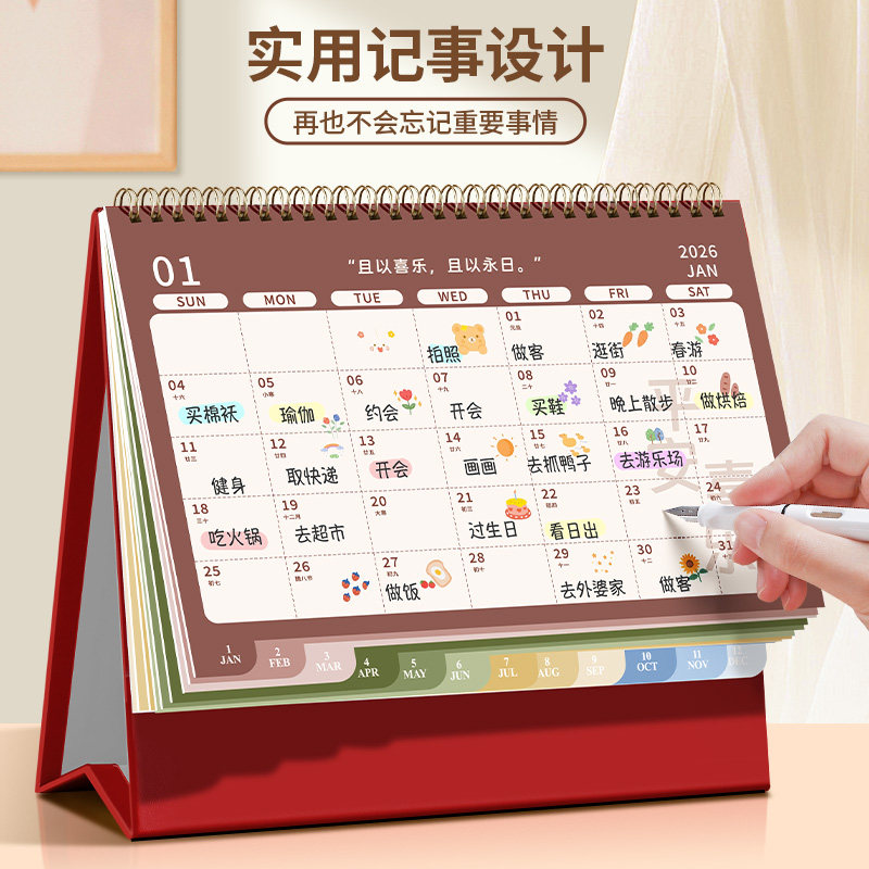 台历2026年新款日历定制logo创意简约小清新韩式办公年历个性中国风桌面摆件商务工作记事计划本订制广告月历