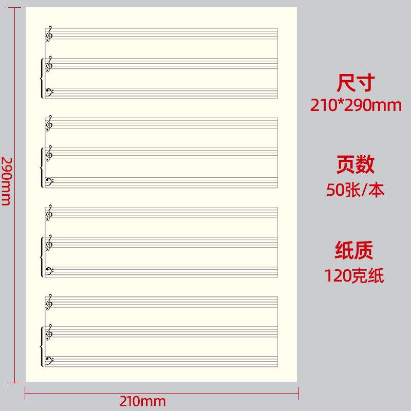 五线谱本四线六线谱本抄谱本钢琴吉他贝斯小提琴乐谱本高低音谱本