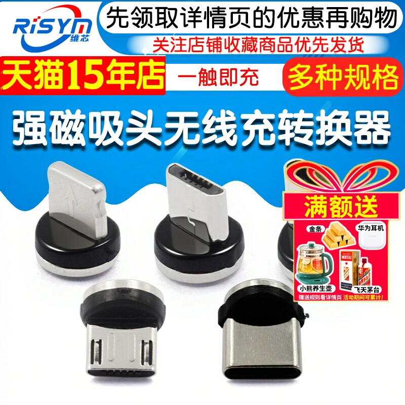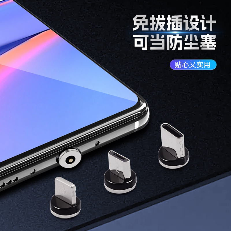 单触点强磁力磁吸头车载无线充电支架手机专用转接头适用苹果华为安卓type-c小米荣耀防尘塞转接头转换器磁头