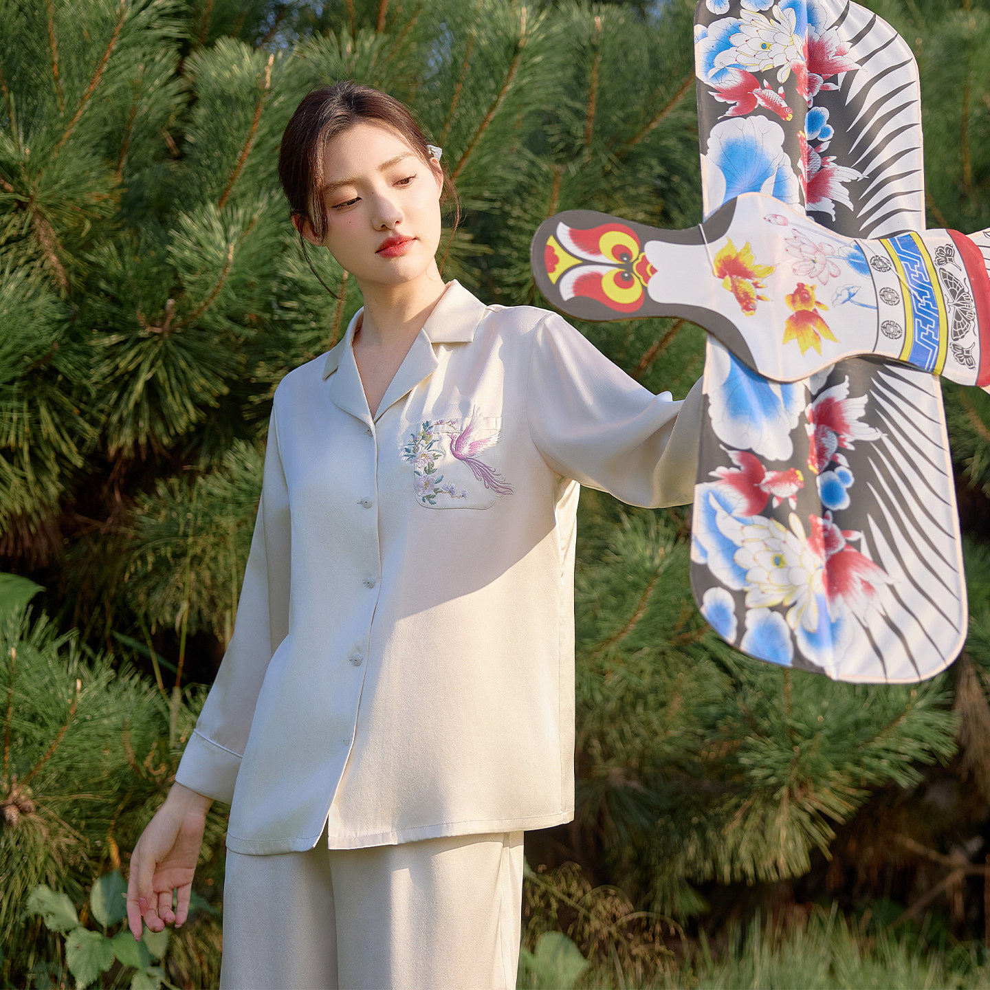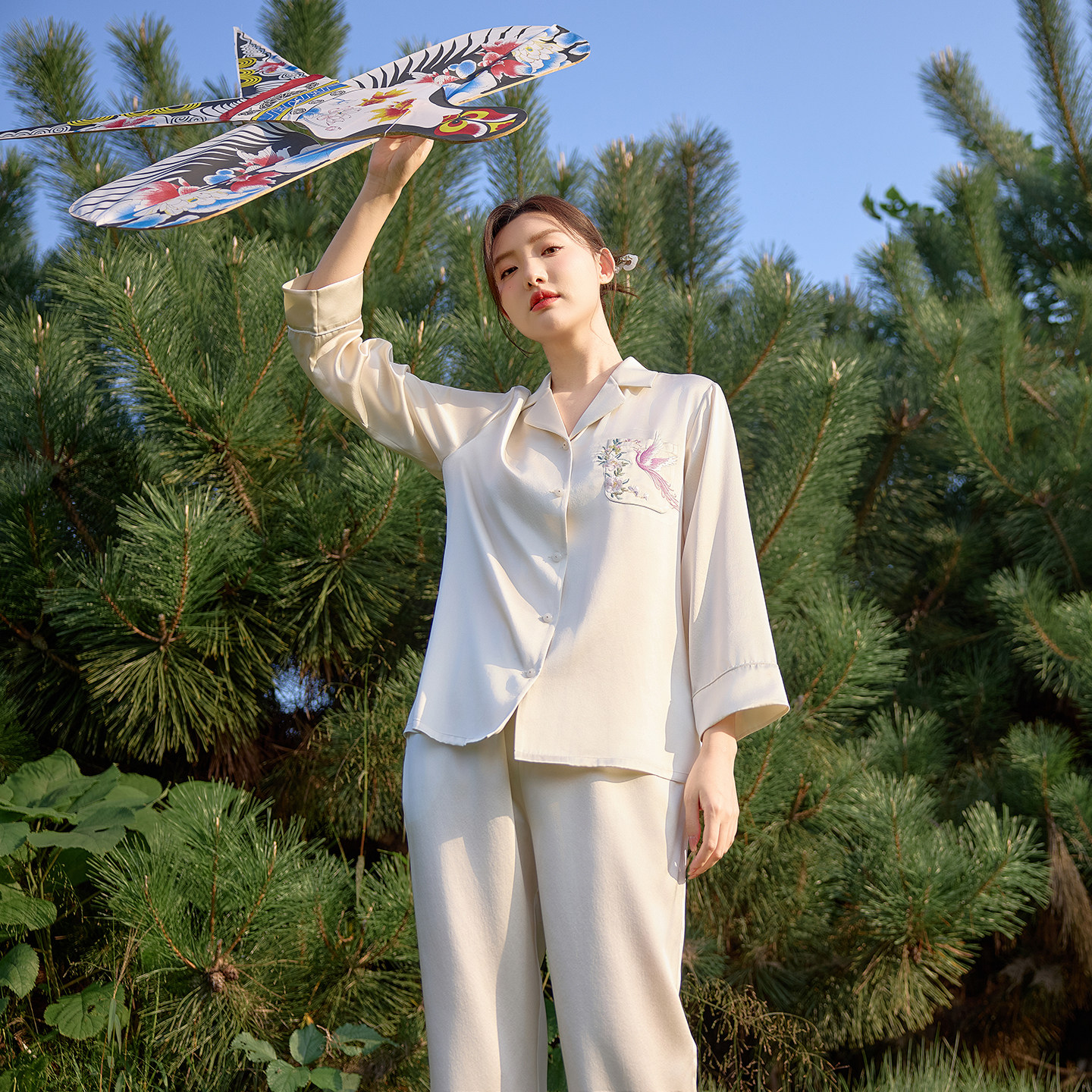 『浙江精品·绽放系列』美标真丝睡衣套装中国风手工刺绣家居服夏