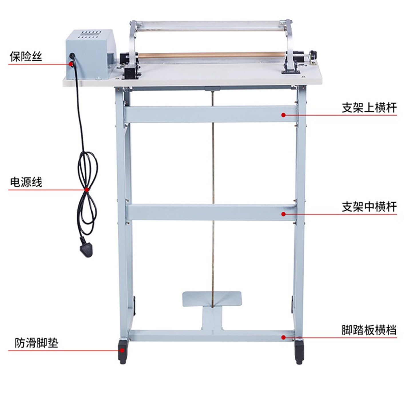快速连续通过式脚踏封口机封切零食品无纺布月饼真空铝箔茶叶袋商用塑料保鲜薄膜收缩膜包装密封脚踩加热封机