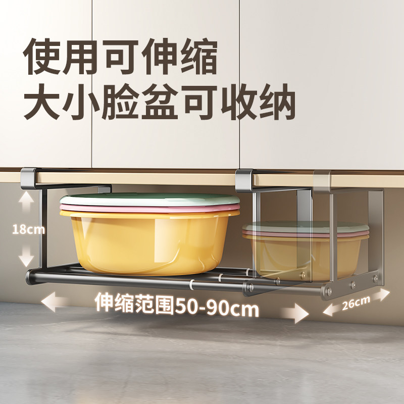 悬挂脸盆收纳架盆子浴室柜下卫生间置物架挂钩免打孔伸缩挂盆神器