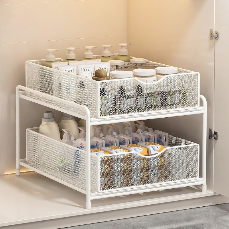 浴室抽拉式置物架厕所拉篮分层架洗漱台下水槽多层镂空收纳储物筐
