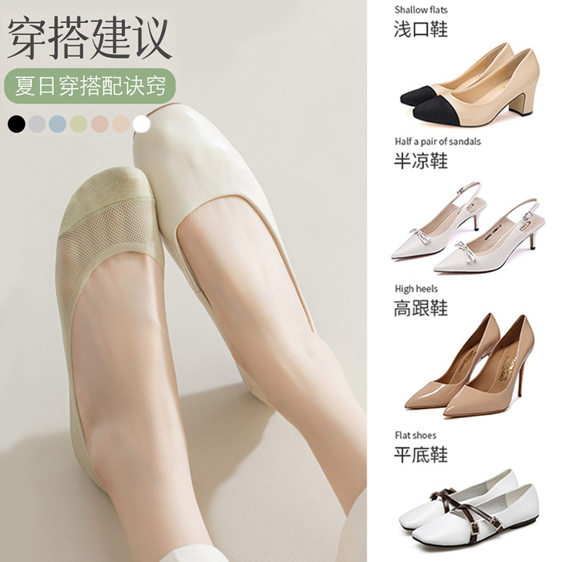船袜女薄款防滑不掉跟纯棉底高跟鞋单鞋夏天浅口隐形袜子吸汗超薄