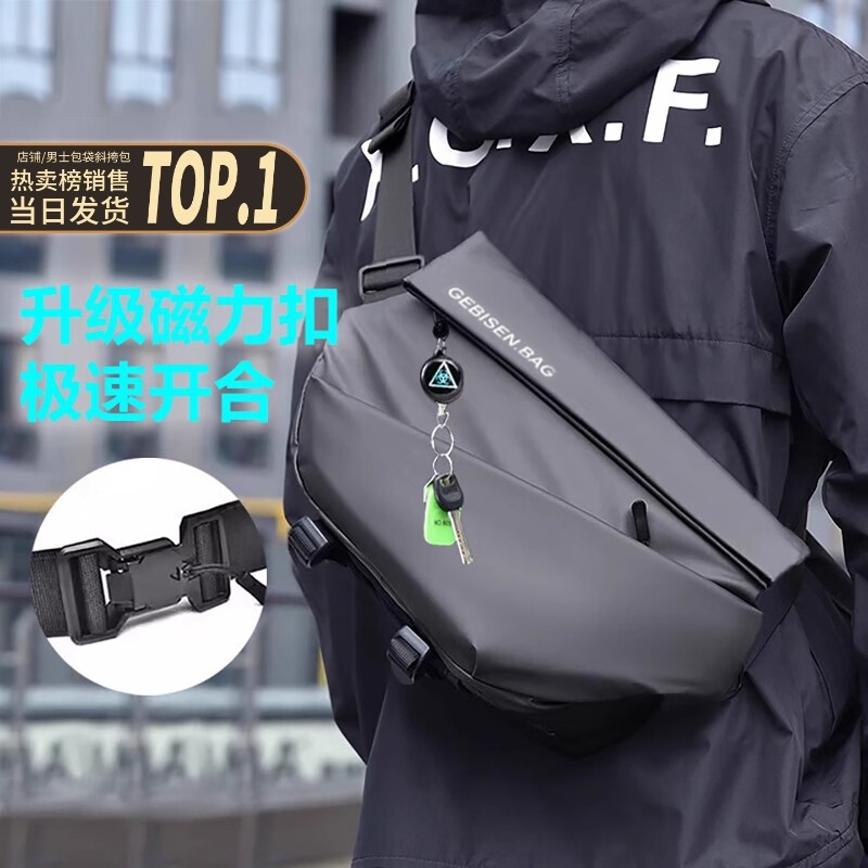 2025新款男士斜挎包防水运动单肩包休闲大容量胸包磁吸扣通勤时尚