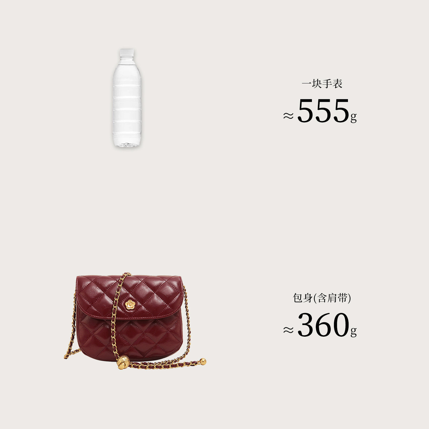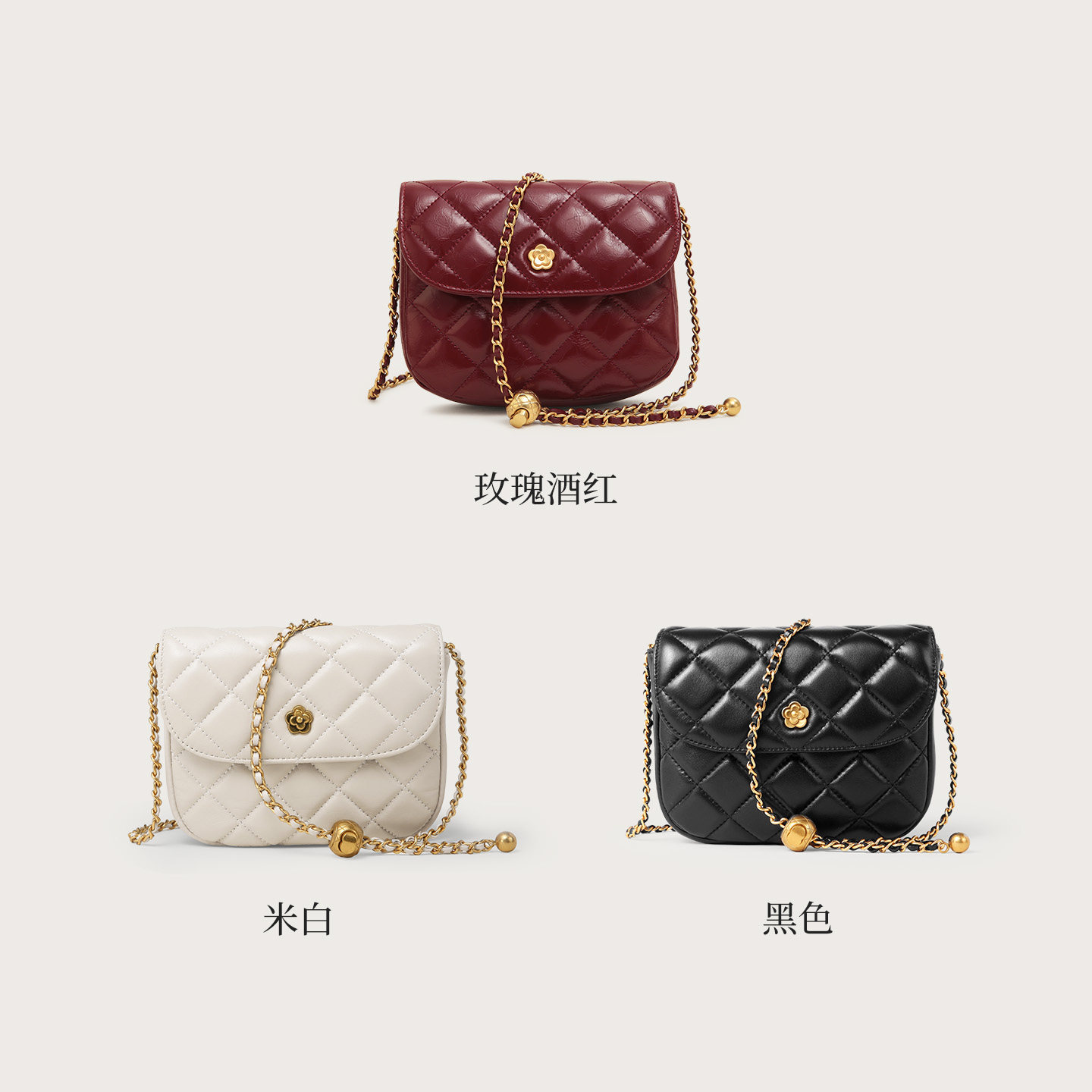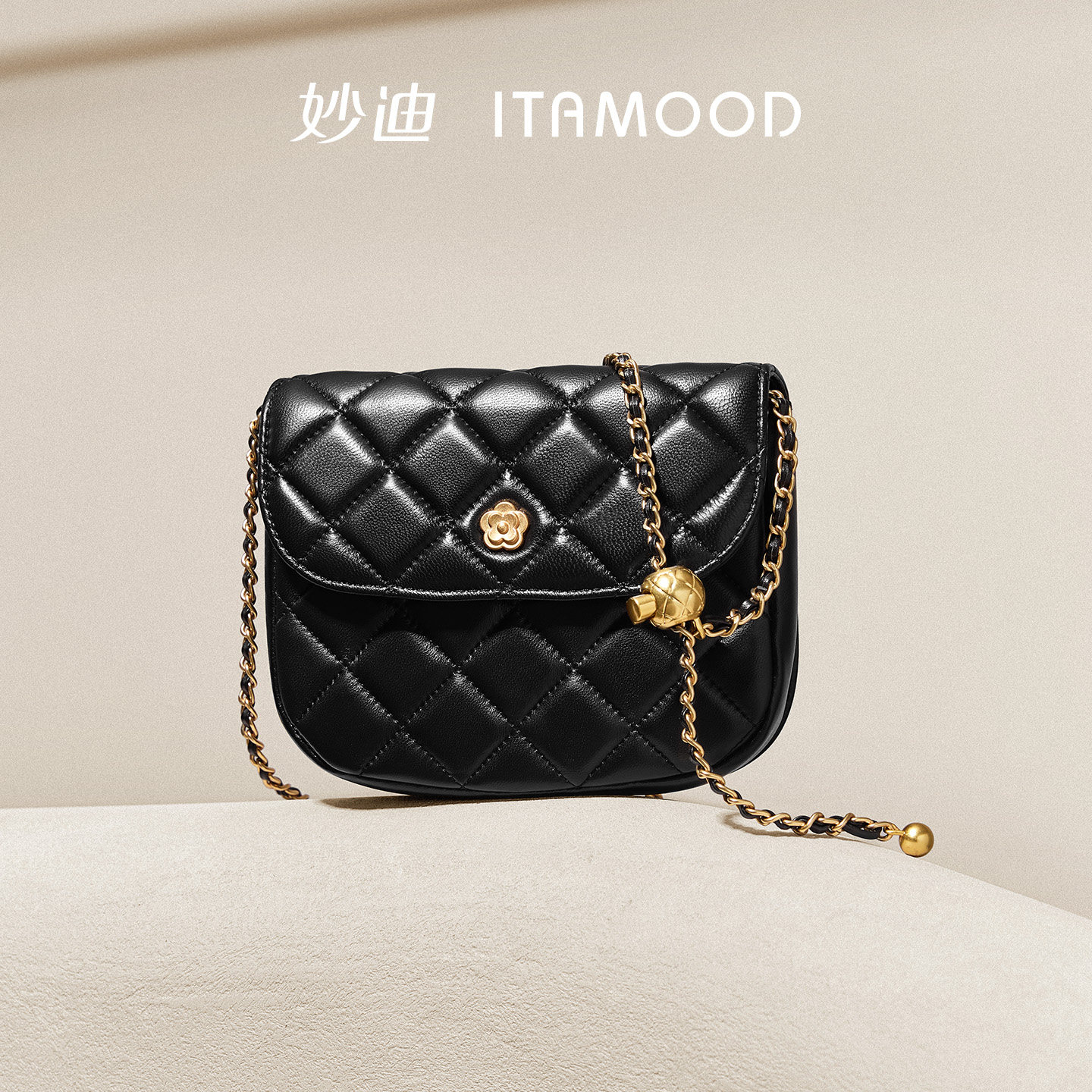 妙迪红色真皮马鞍包小香风菱格链条小包包职场通勤单肩斜挎包女款