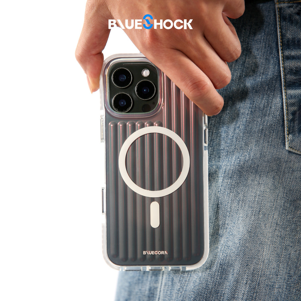 blueshock蓝色苞米旗下原创简约镭射炫彩行李箱 适用于iPhone 17/16/15 PRO MAX 磁吸magsafe全包防摔手机壳