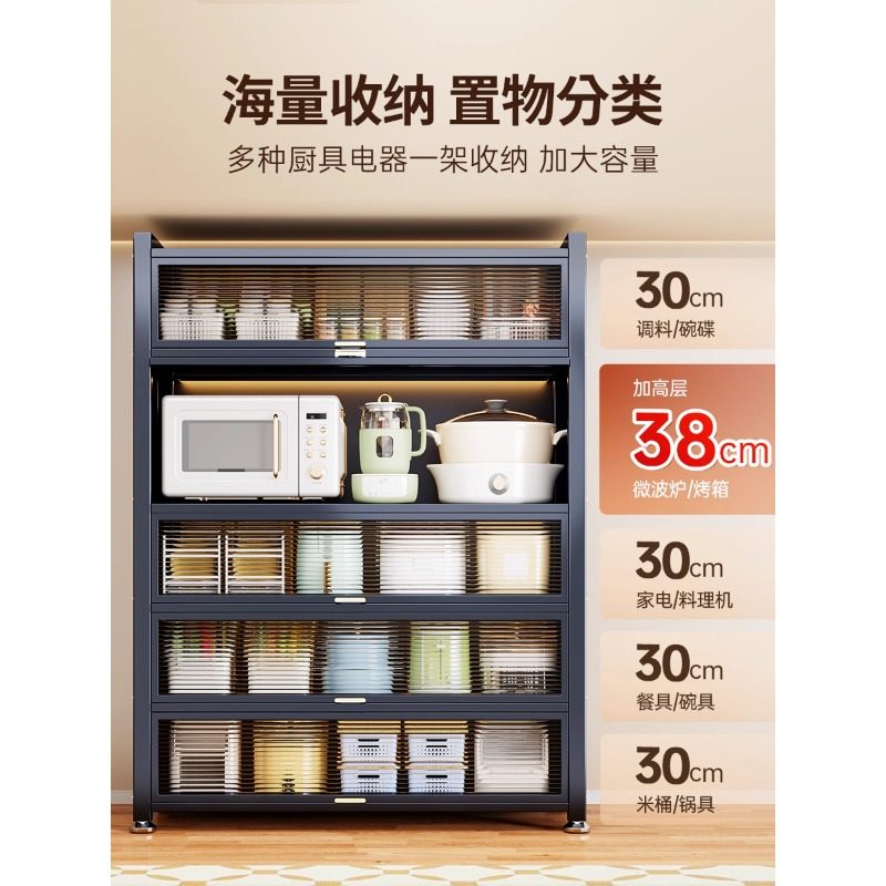 厨房置物架落地多层收纳柜子微波炉家用碗柜多功能橱柜储物柜碳钢