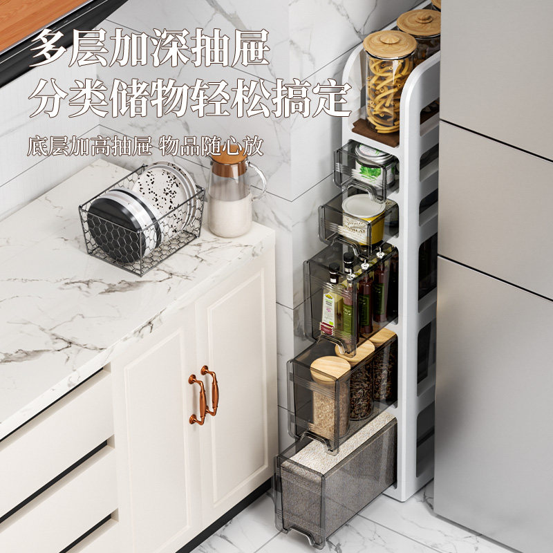 夹缝收纳柜厨房多层可移动18cm窄缝置物架塑料立柜缝隙储物柜抽屉