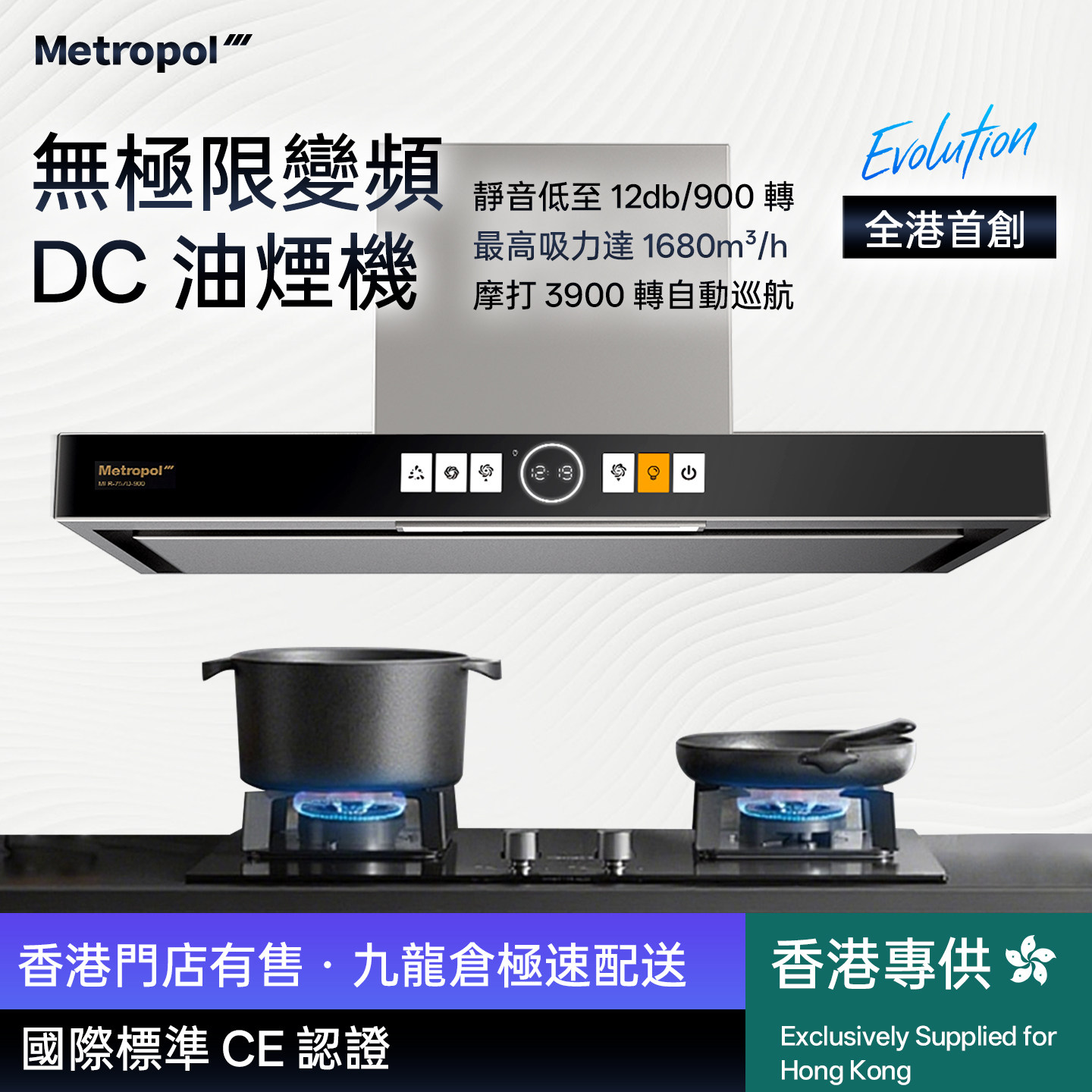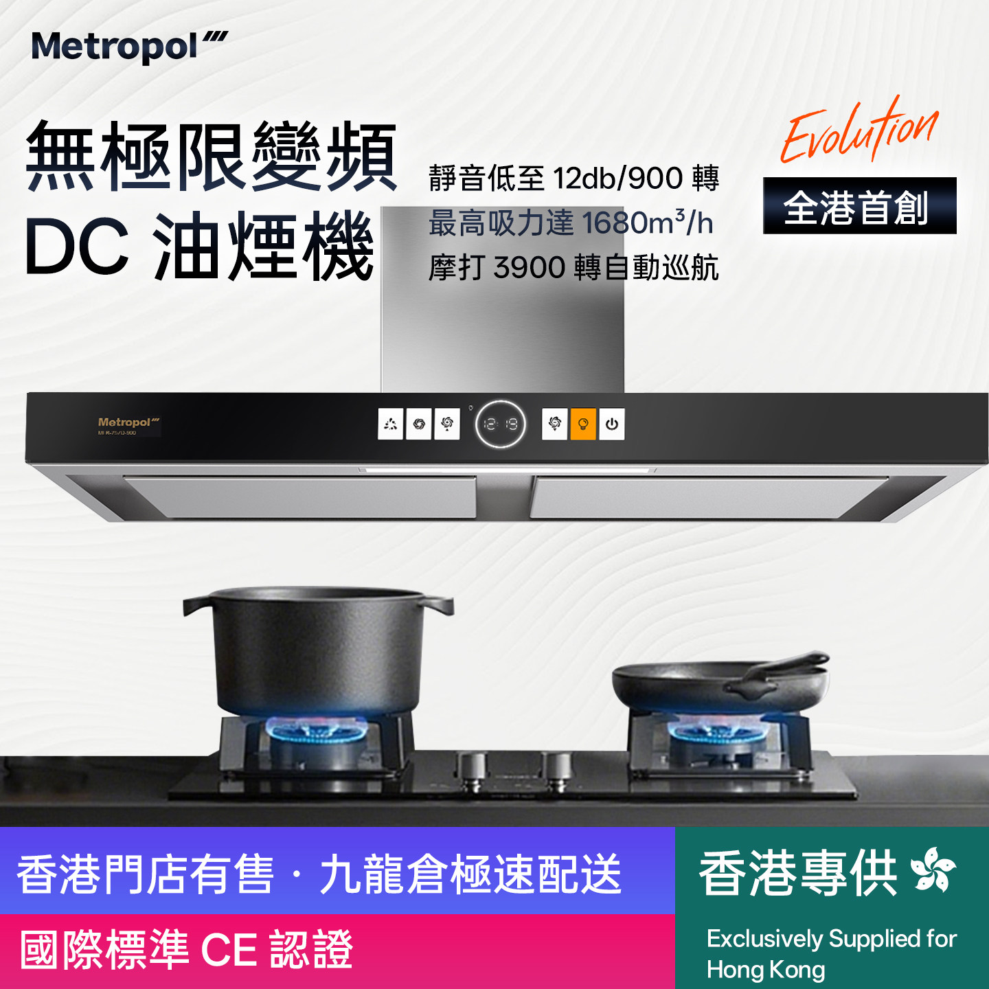 【香港倉發貨安裝】Metropol抽油煙機公寓靜音小尺寸大吸力頂吸式