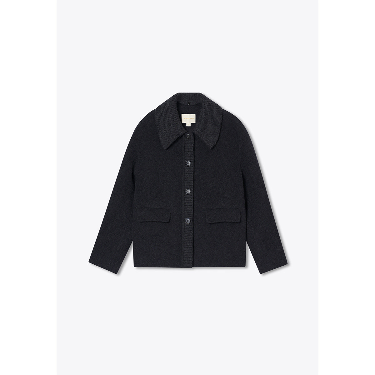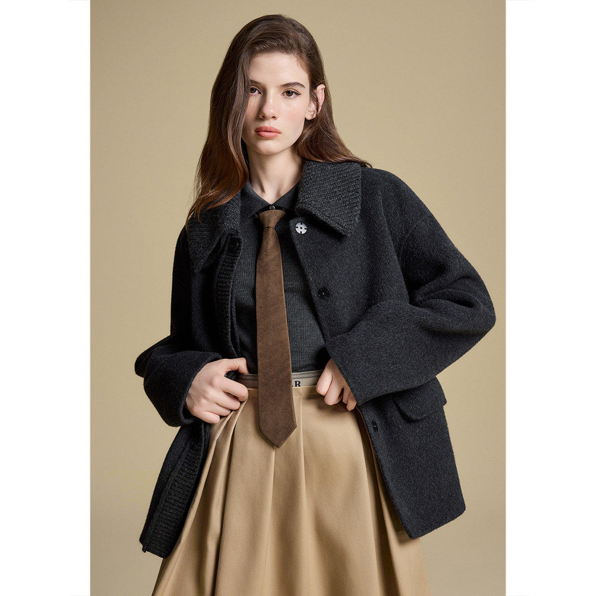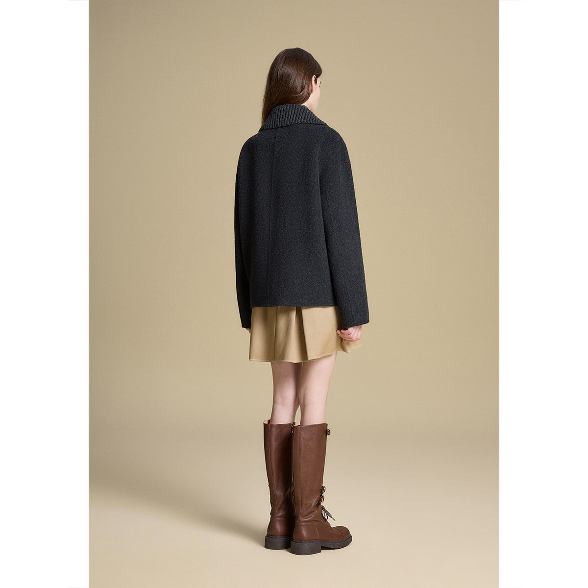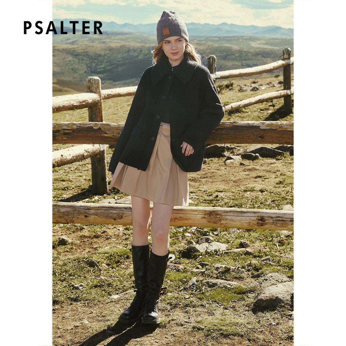 PSALTER诗篇大翻领单排纽扣罗纹门襟毛呢短外套2025冬款