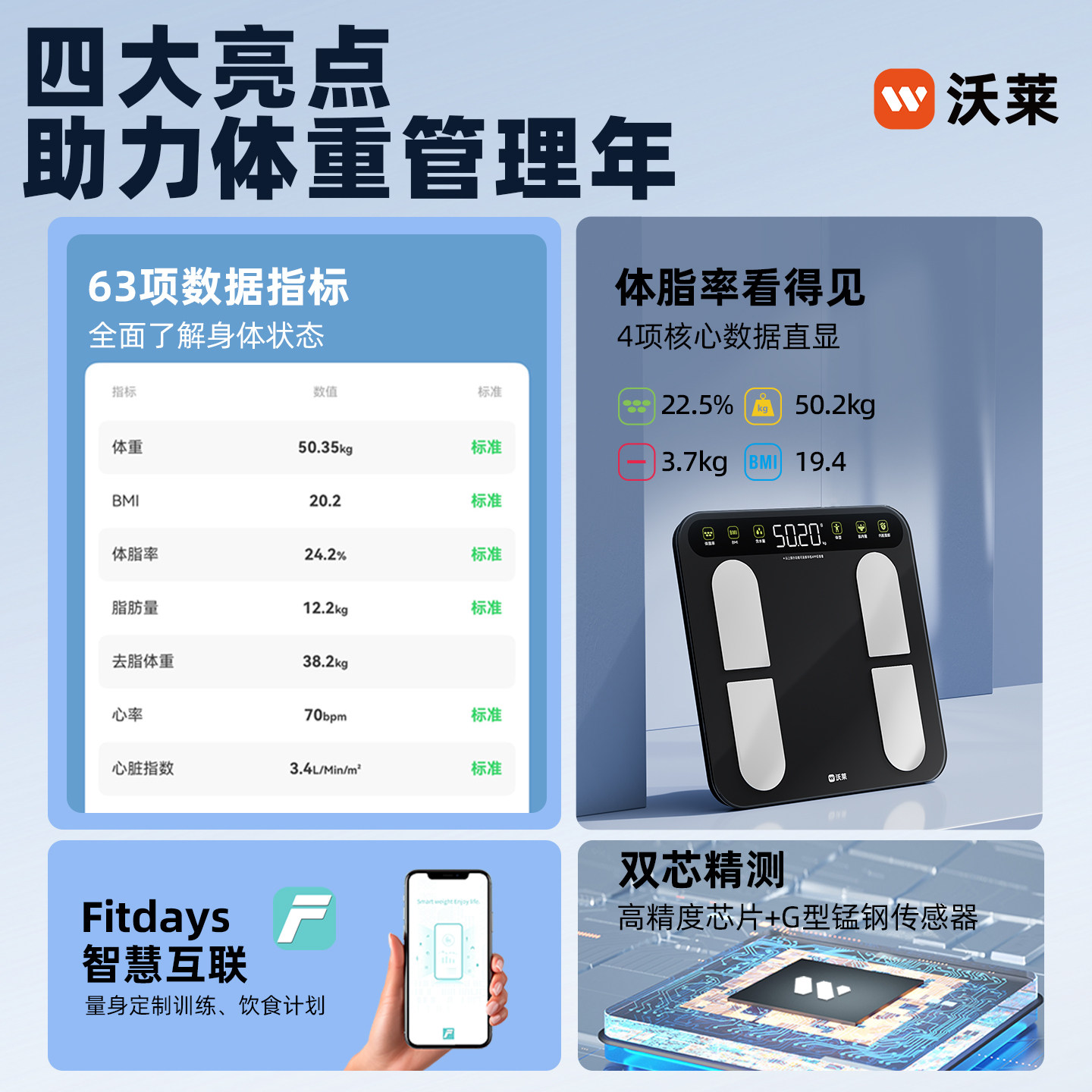 沃莱体脂秤体重秤电子秤家用小型高精准称人体秤体脂称减肥健康秤
