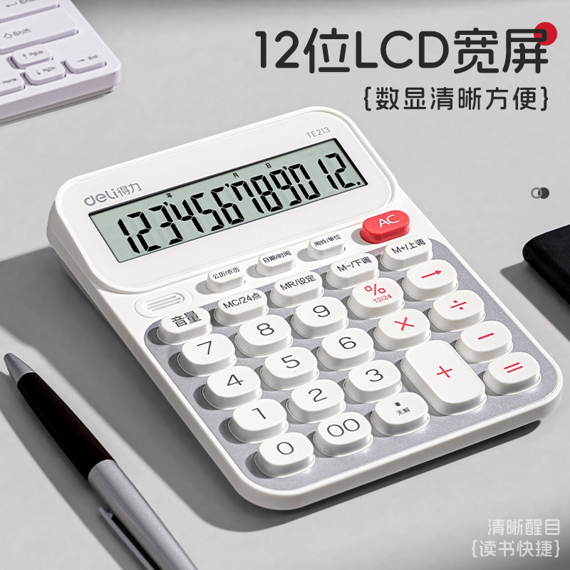 得力计算器真人语音播报办公会计用学生用大屏幕大按键宽屏数显计算器多功能便携商用双电池款高颜值计算器