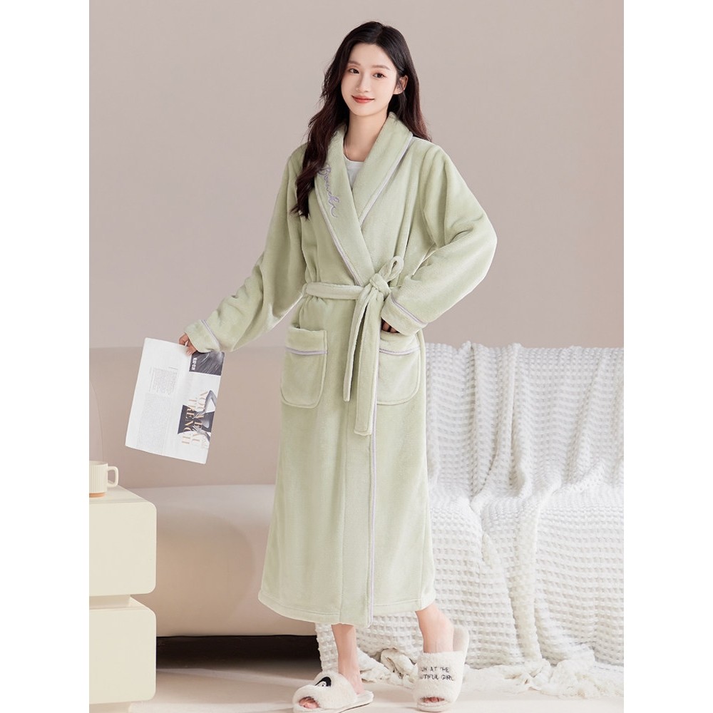 珊瑚绒睡袍女2025秋冬季中长款浴袍加厚加绒睡衣法兰绒家居服女冬