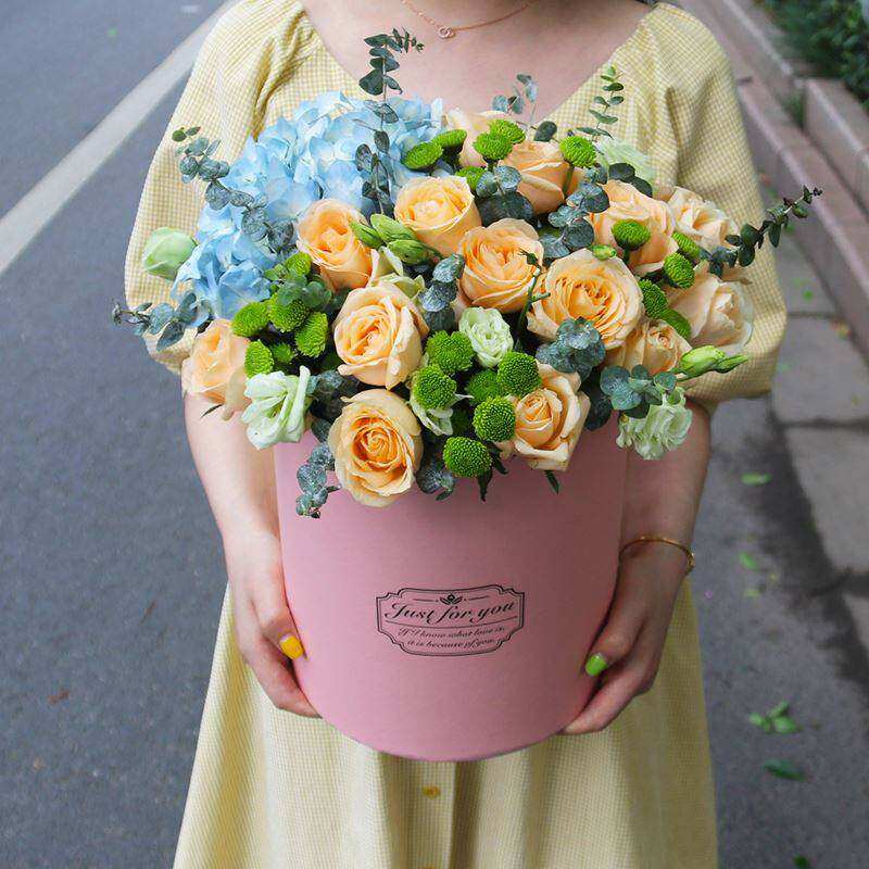 母亲节花束杭州绣球玫瑰混搭手提抱抱桶速递同城南京生日配送
